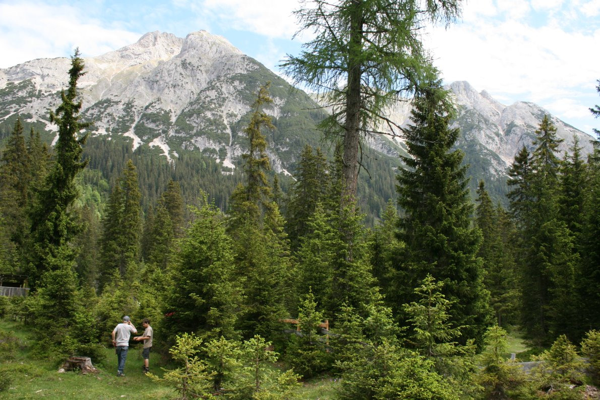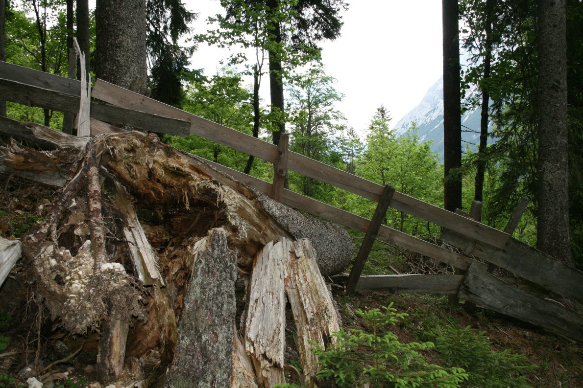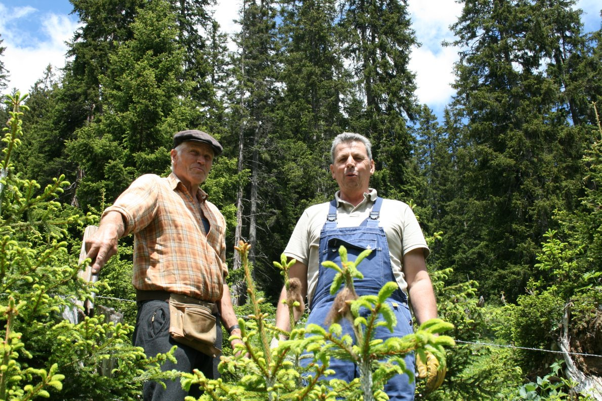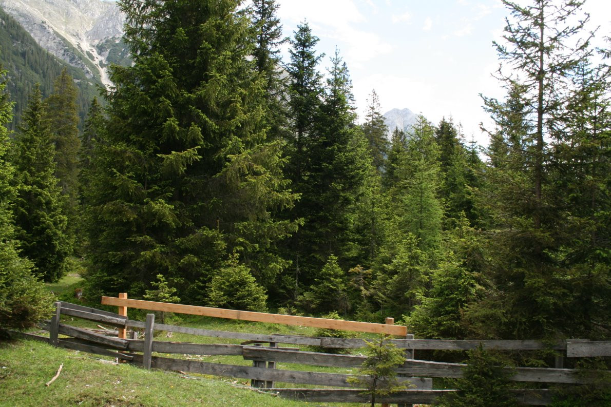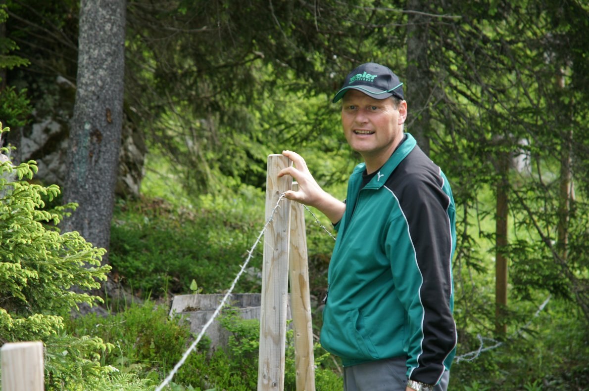 Im Bergwald darf das Vieh weiden, dafür müssen die Mieminger Bauern den Forst schützen, beispielsweise durch Zäunung und Ummantelung frischer Setzlinge. Klaus Scharmer: “Unsere Alm ist der nördlichste Zipfel der Gemeinde Mieming und die einzige Ecke im Bezirk Imst, die an an die Zugspitz-Region in Deutschland grenzt”.