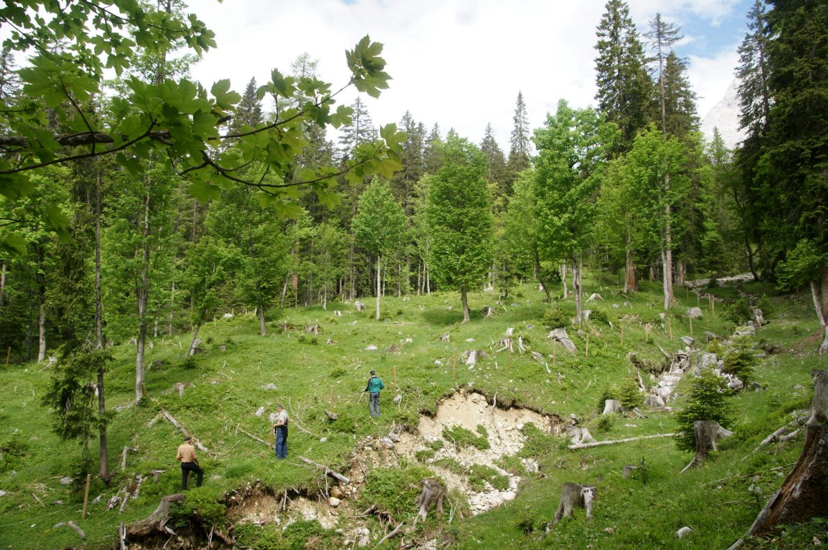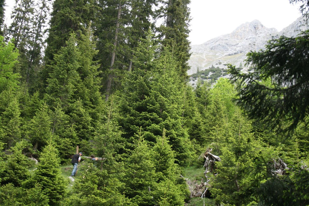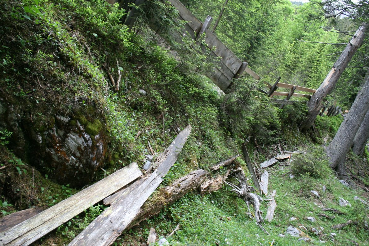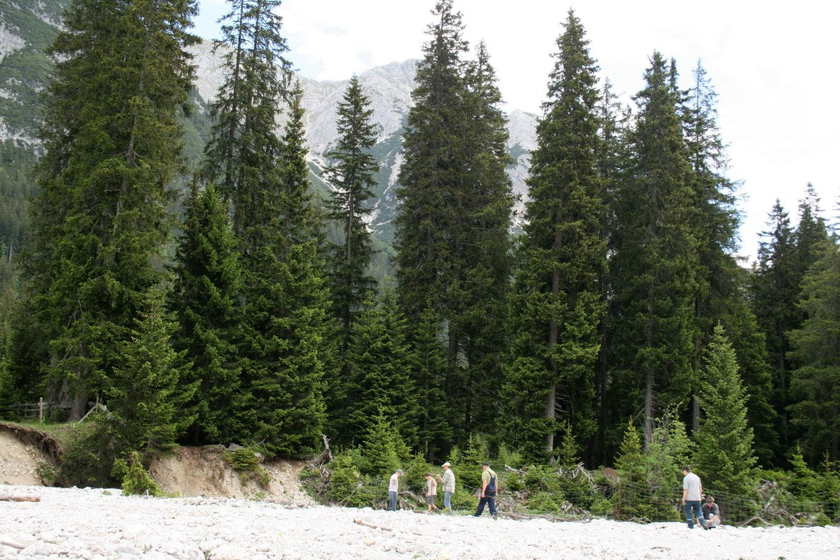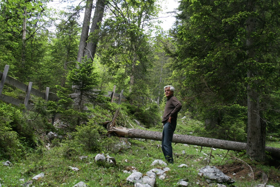 Im Bergwald darf das Vieh weiden, dafür müssen die Mieminger Bauern den Forst schützen, beispielsweise durch Zäunung und Ummantelung frischer Setzlinge. Klaus Scharmer: “Unsere Alm ist der nördlichste Zipfel der Gemeinde Mieming und die einzige Ecke im Bezirk Imst, die an an die Zugspitz-Region in Deutschland grenzt”.