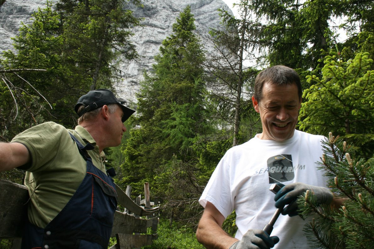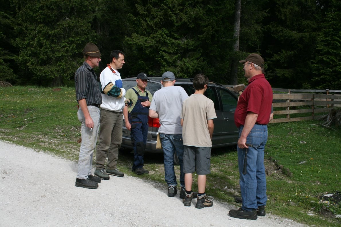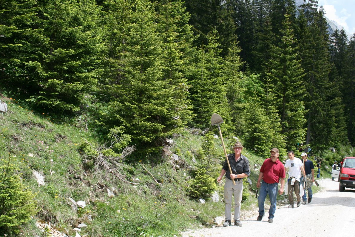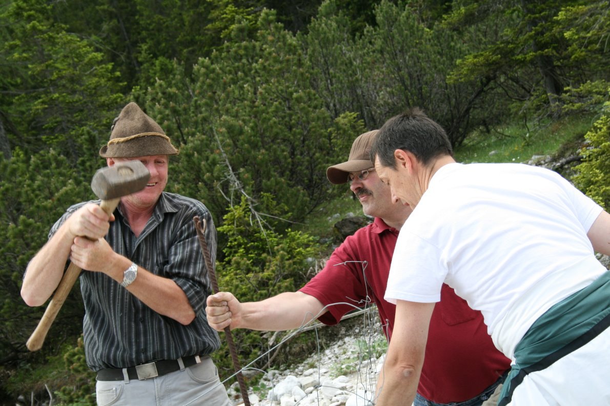 Zur Alltagsarbeit zählt beispielsweise das Latschen entfernen, damit die Almen nicht „verbuschen“ bzw. zuwachsen. Die Wege werden gerichtet, Steine aufgesammelt, Felsabgänge geräumt und andere Schäden beseitigt. Die Schneelasten im Winter haben allerdings aus Sicht der Almbauern noch andere Auswirkungen. Im Frühjahr ist deshalb vor allem „Zäunen“ angesagt. Heuer trafen sich am 28. Mai 2011 24 Helfer, um mehr als 3 ½ Kilometer Weidezäune zu reparieren.