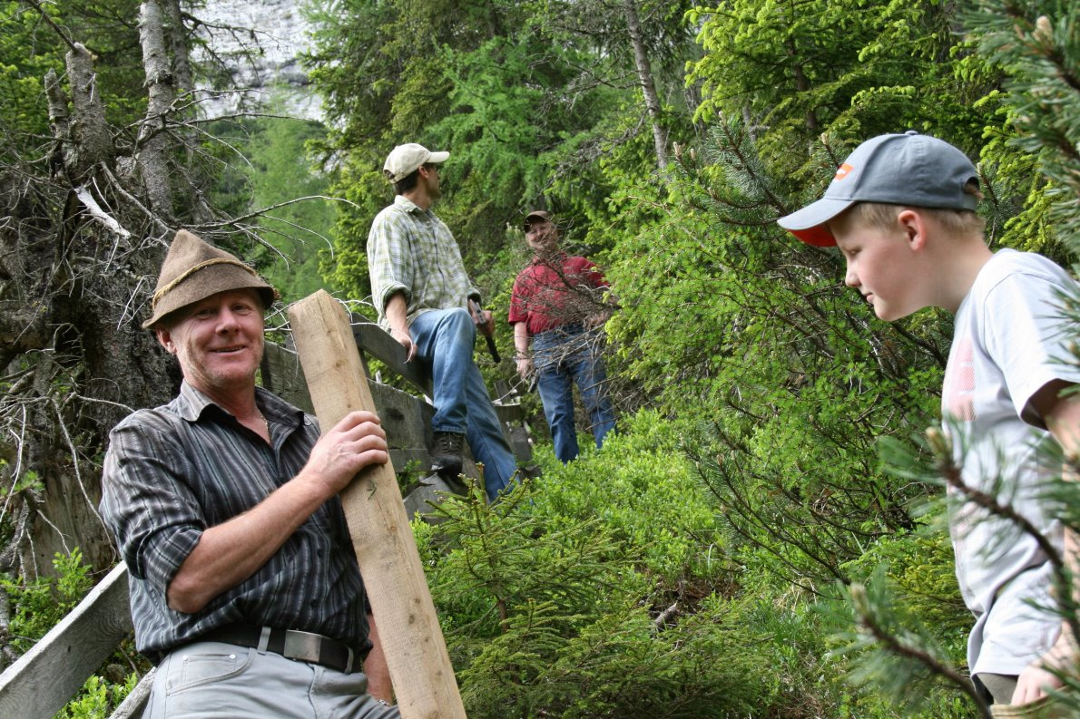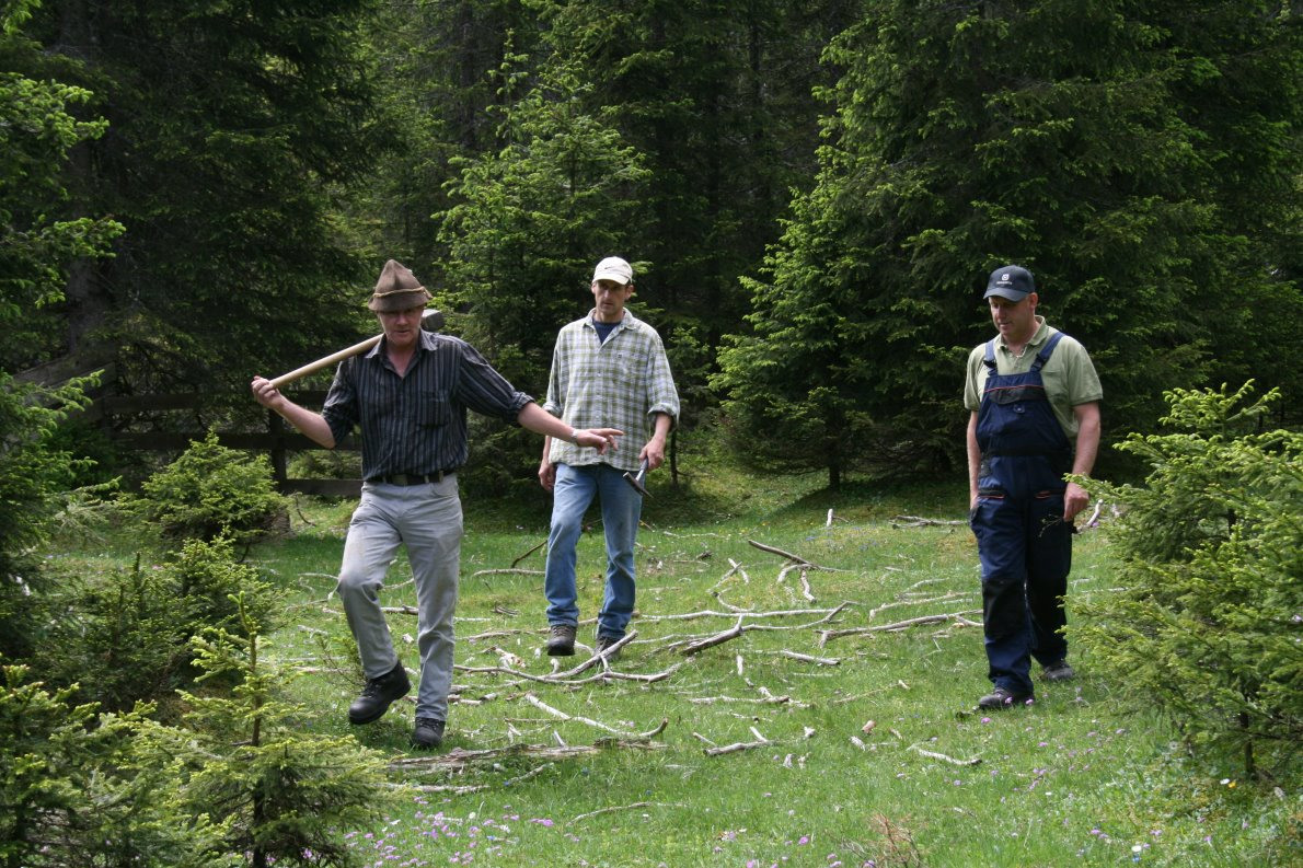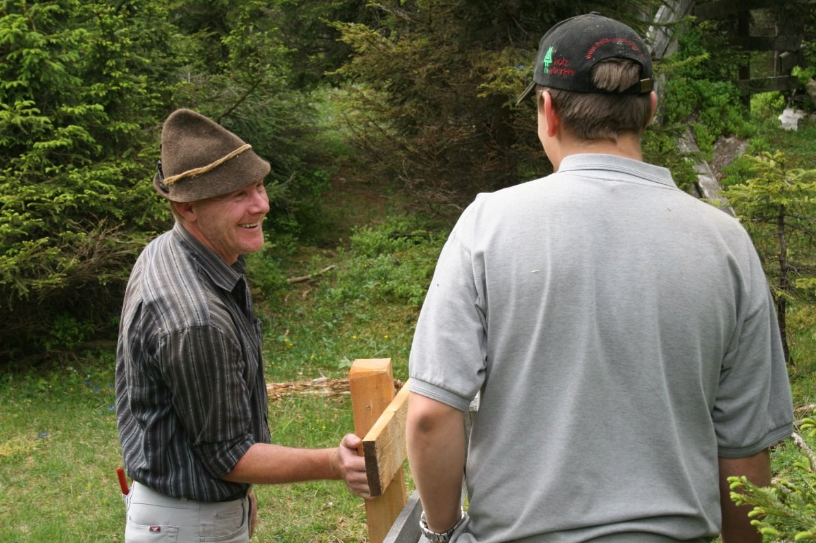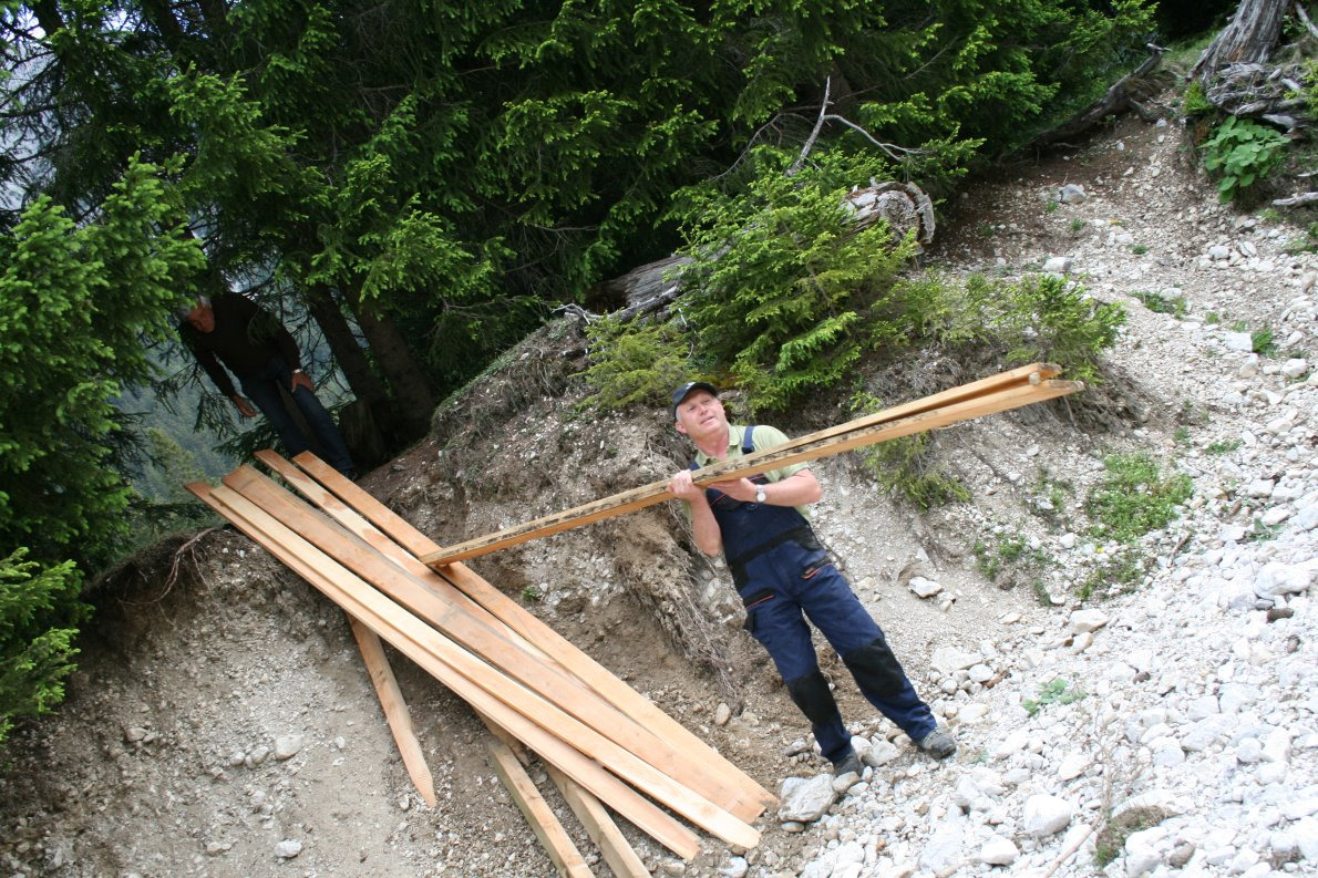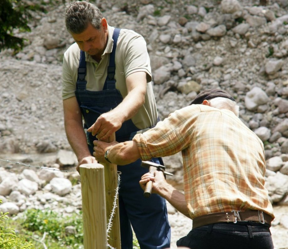 Zur Alltagsarbeit zählt beispielsweise das Latschen entfernen, damit die Almen nicht „verbuschen“ bzw. zuwachsen. Die Wege werden gerichtet, Steine aufgesammelt, Felsabgänge geräumt und andere Schäden beseitigt. Die Schneelasten im Winter haben allerdings aus Sicht der Almbauern noch andere Auswirkungen. Im Frühjahr ist deshalb vor allem „Zäunen“ angesagt. Heuer trafen sich am 28. Mai 2011 24 Helfer, um mehr als 3 ½ Kilometer Weidezäune zu reparieren.