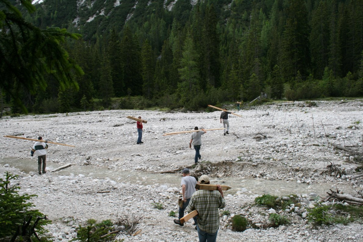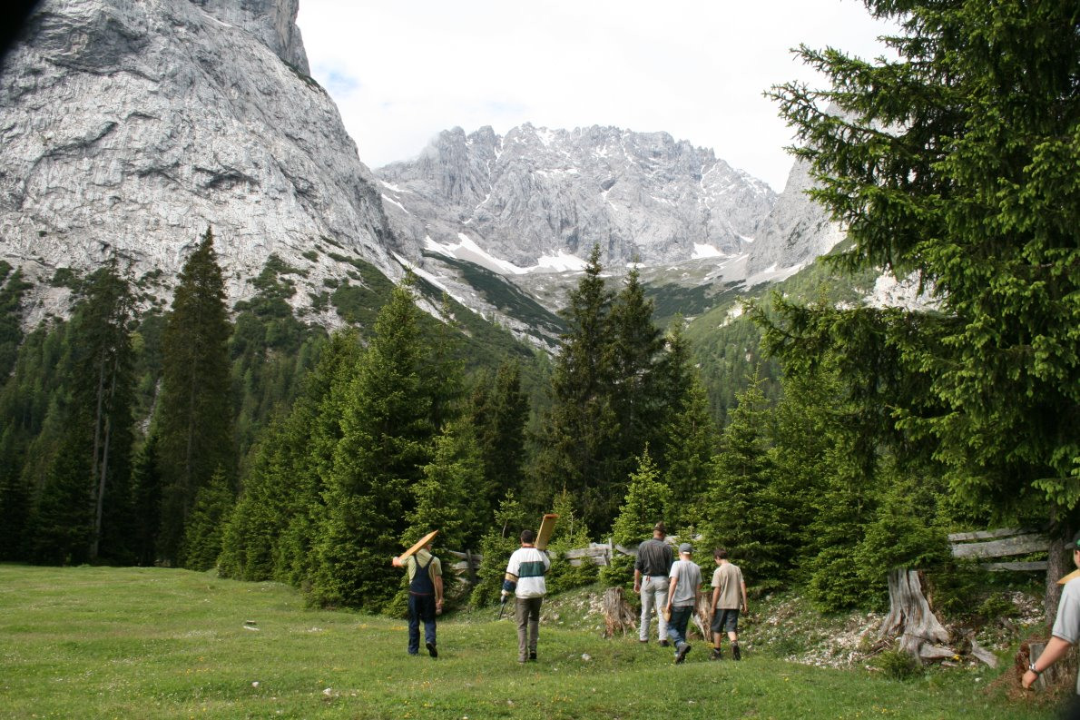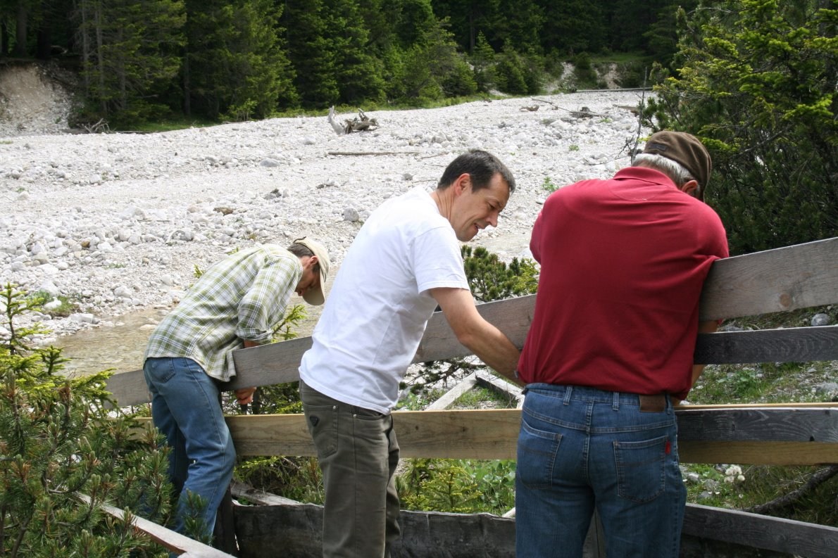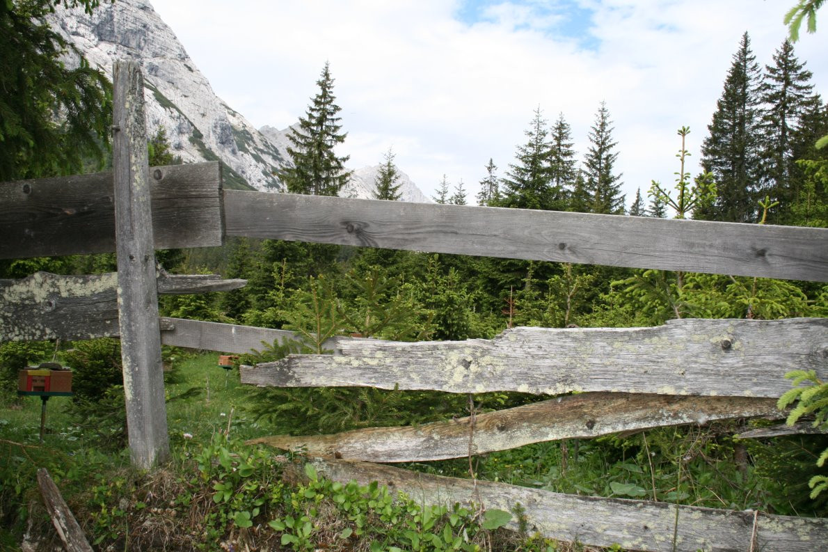 Heute begleite ich die Obermieminger Almbauern zum „Zäunen“ auf ihre Feldereralpe ins Gaistal. Zäunen auf der Feldereralpe heißt, es müssen mindestens vier Kilometer Weidezäune repariert werden. Von den Schneelasten werden sie vielfach erdrückt. Mit dem Zäunen beginnt für die Almbauern die alljährliche Arbeit auf den Almen.