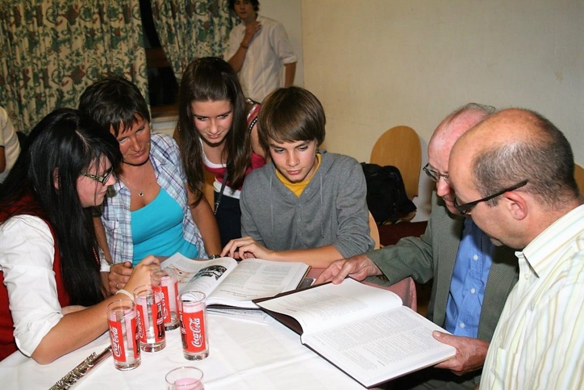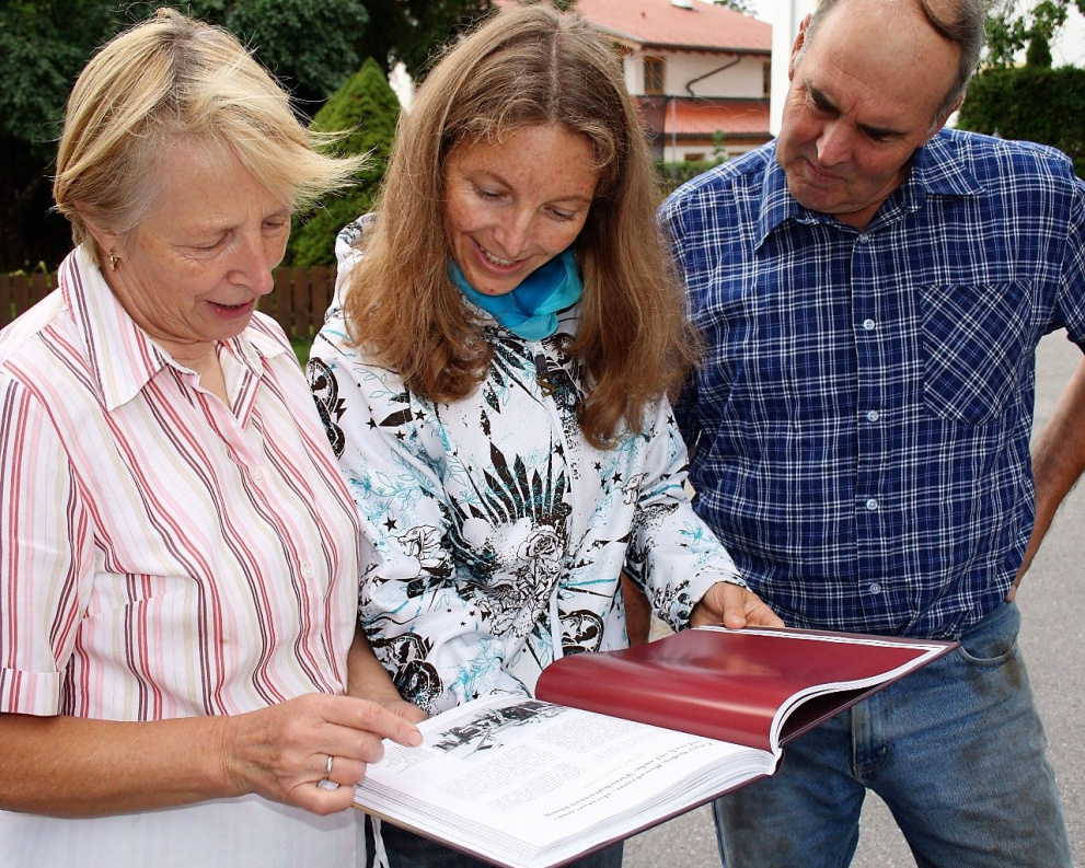 Die Stimmung ist jetzt etwas weniger aufgeregt. Martin blättert durch die 300 Seiten. „Mein Vater hat mir am meisten geholfen“, höre ich von Ingeborg. „Sein Gemeindearchiv war für mich in den vergangenen Jahren schon fast ein zweites Zuhause“, scherzt sie und schaut dabei zum Vater. „Im Ernst. Vielleicht kann das Buch ja ein Stückweit aufzuzeigen, was Chronisten und Volkskundler leisten?“