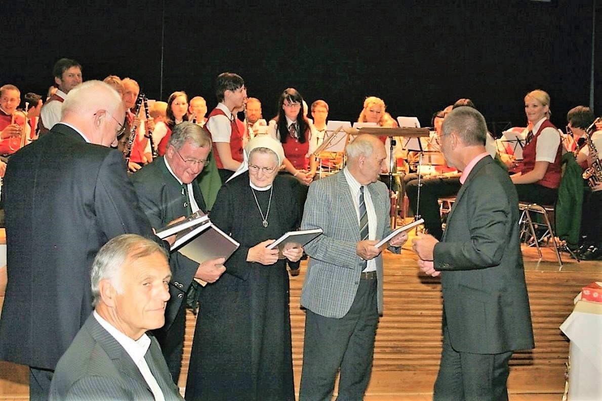 Geladen sind zahlreiche Gratulanten, darunter die Altbürgermeister, der Landtagspräsident und der amtierende Landeschronist. Die Liste der Ehrengäste kann sich sehen lassen. Die Musikkapelle stimmt mit dem „Vater-Unser-Marsch“ ein und Dr. Ingeborg Schmid-Mummert ist die gefeierte Persönlichkeit, auf die sich an diesem stimmungsvollen Abend alle Augen richten.