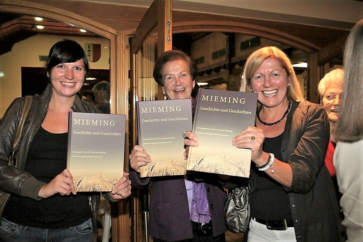Wer noch nicht zum kleinen Kreis zufällig Auserwählter gehörte, die einen ersten Blick ins neue Mieming-Buch werfen konnten, muss sich bis zum Abend gedulden. Im Gemeindehaus wird es Bürgermeister Dr. Franz Dengg ganz offiziell vorstellen.