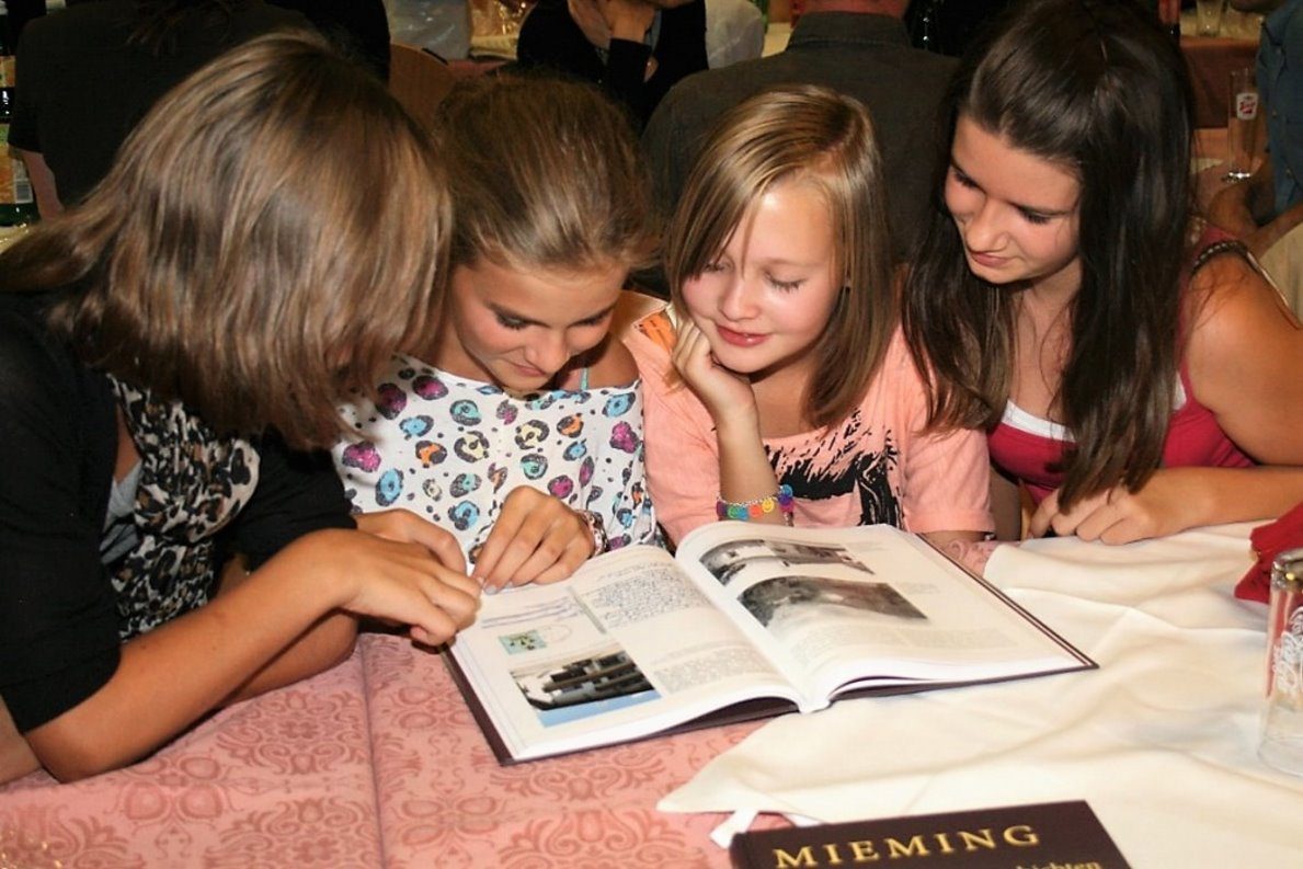 Mieming-Buch-Erstleser. (Fotos: Knut Kuckel)„Berührt und beflügelt haben mich vor allem die Freiheit in der Umsetzung und das Vertrauen, das mir entgegengebracht wurde“, sagt die Geschichtensammlerin rückblickend und konkretisiert, „wenn sich Familien wieder gemeinsam über Fotoalben beugen – Vereine in ihren Kästen kramen – Altmitglieder und andere befragen, fühlt man die emotionale Bedeutung dieser Begegnungen.“