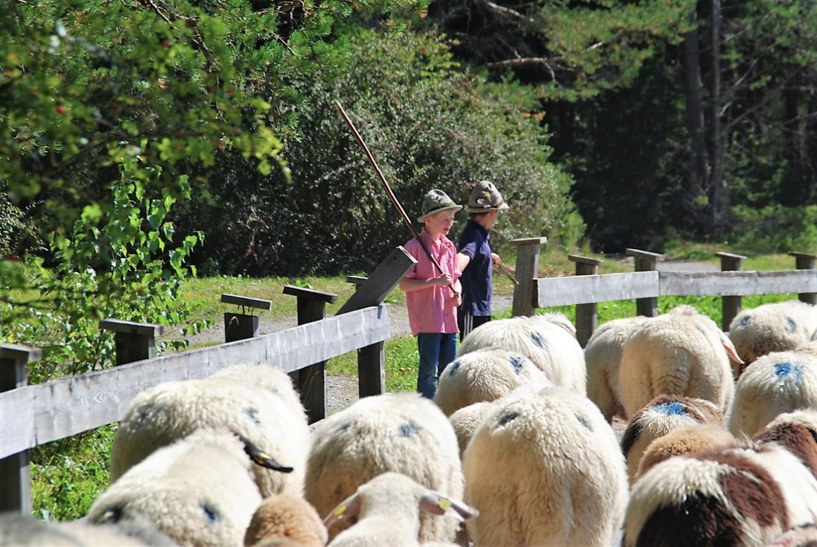 Michi Maurer: „Es war in der Früh so eisig-kalt, dass man die Kappe und Handschuhe gut erleiden konnte“. Aufbruchstimmung – morgens um 7 Uhr – bei winterlichen Temperaturen um den Gefrierpunkt. Nicht ganz so kalt wie im vergangenen Jahr, erzählt unsere Reporterin, da musste die Schafschoad wegen des frühen Wintereinbruchs auf der Seeben-Alm (1566 Meter über Seehöhe) einen Tag früher als geplant durchgeführt werden. Seeben-Alm-Hirt Gerhard Wiggins: „Wenn die Tiere spüren, dass es Winter wird und das Futter knapp wird, dann wollen sie nach Hause“. Den angeborenen Instinkt teilen sich die Bergschafe mit ihrem Chef-Hirten.