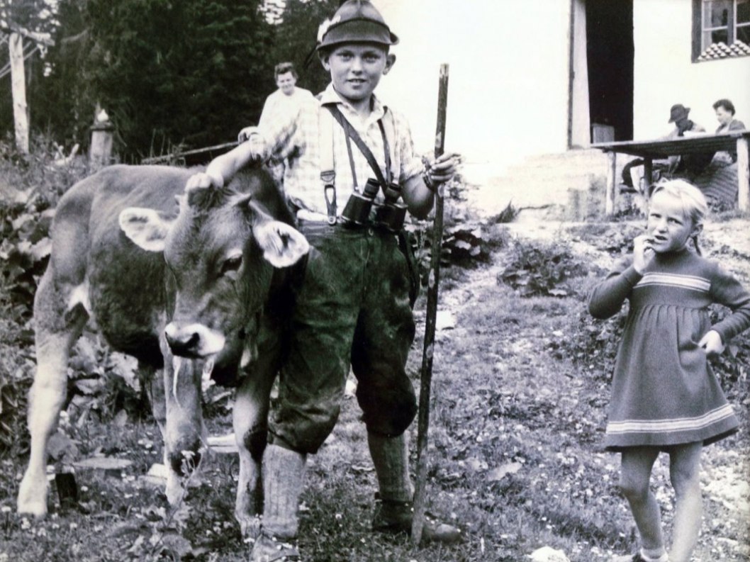Die Gene des „guten Hirten“ sind dem Schuchter Herbert mit in die Wiege gelegt worden. Als kleiner Bub durfte er zum ersten Mal einen Sommer lang auf der Felderer Alm bleiben. Mit 16 hütete er schon Kühe auf der alten Felderer Alm und Schafe auf der Seeben-Alm. In seiner Stube hängen alte Fotos aus dieser Zeit. Nach einer Schlosser-Lehre stand sein Entschluss fest. Ich werde Almhirt.
