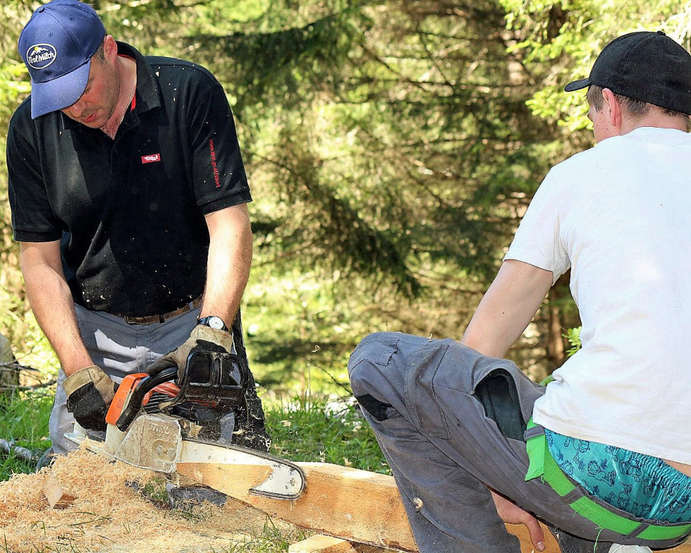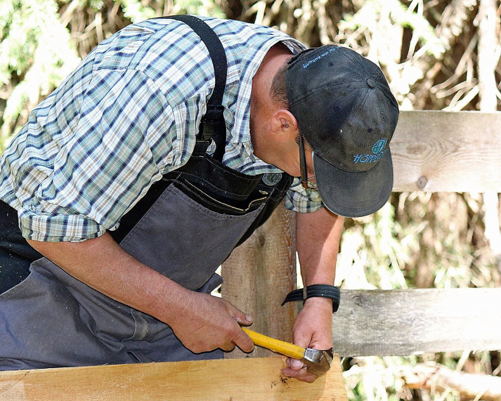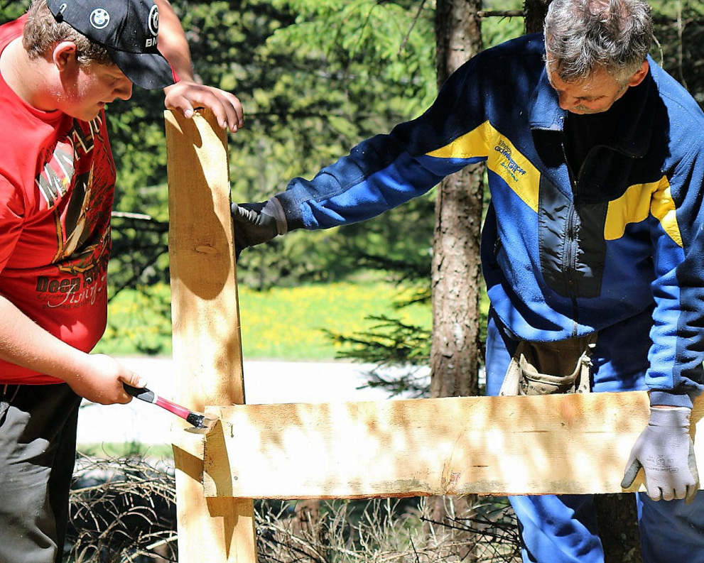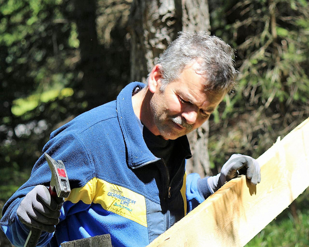 Das Zäuner-Team um Benedikt van Staa, steckte im tiefen Wald und hatte schon ein paar hundert Meter Zaun, zwischen Weißensee und dem im vergangenen Jahr eröffneten Hotel McTirol im Straßendorf Biberwier instandgesetzt.
