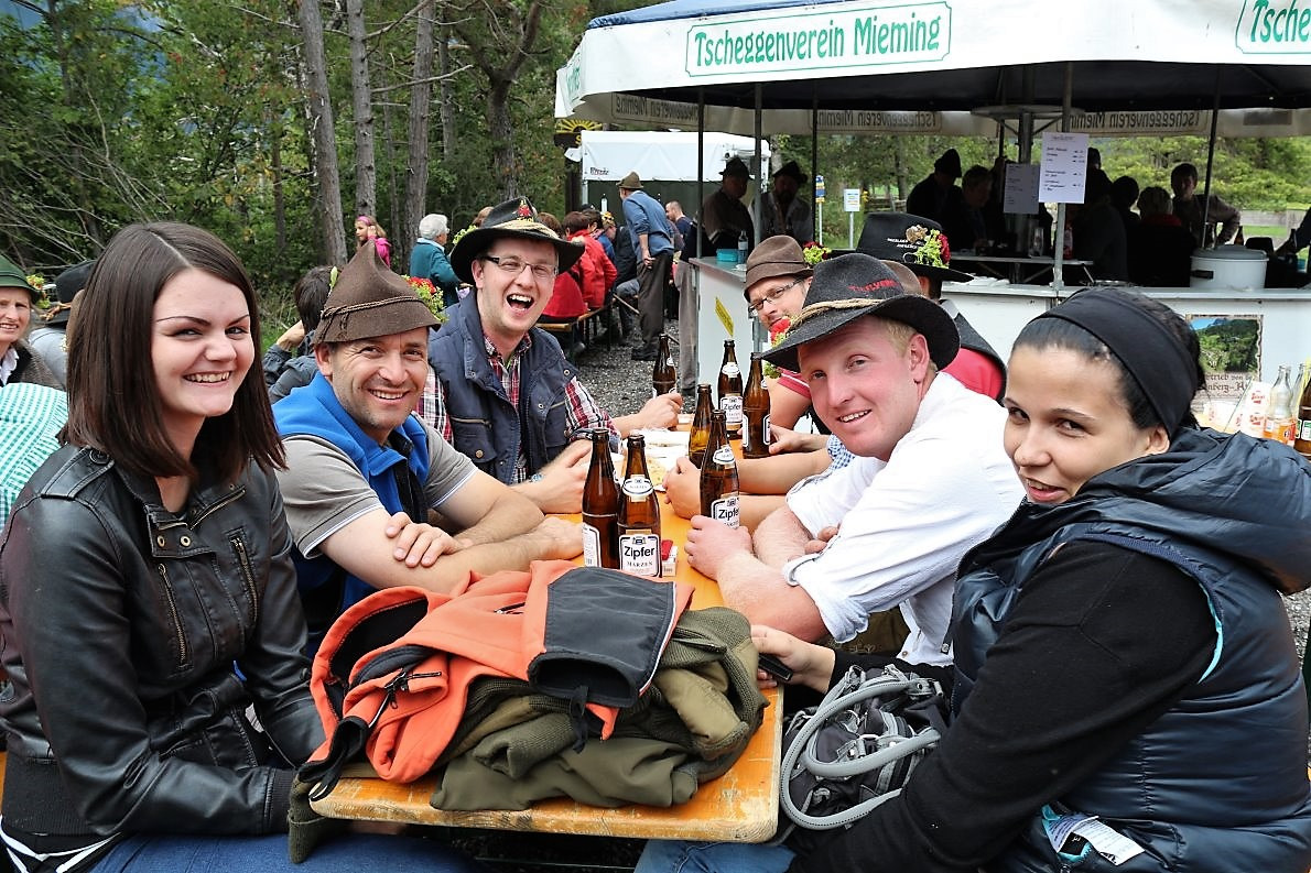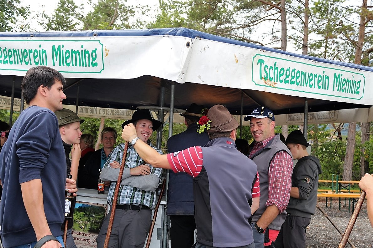 Die Obermieminger Almbauern haben zugunsten der Barwieser Marienberg-Alpler heuer auf ein großes Alm-Fest verzichtet. Im Kreise der Hirten, ihrer Familien und einer Handvoll Gästen feierten die Bauern aus Obermieming in kleinem Rahmen gestern ihr „kleines Almfest“.