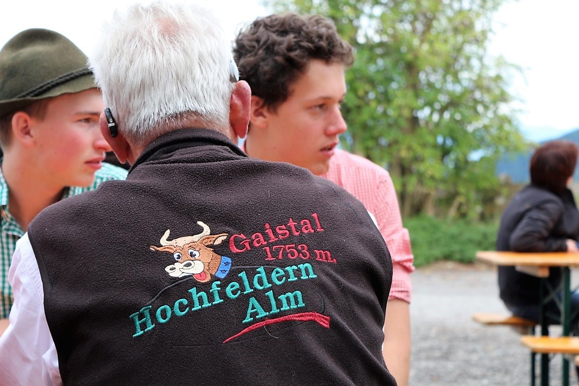 Im Kreise der Hirten, ihrer Familien und einer Handvoll Gästen feierten die Bauern aus Obermieming ihr „kleines Almfest“. (Foto: Knut Kuckel)