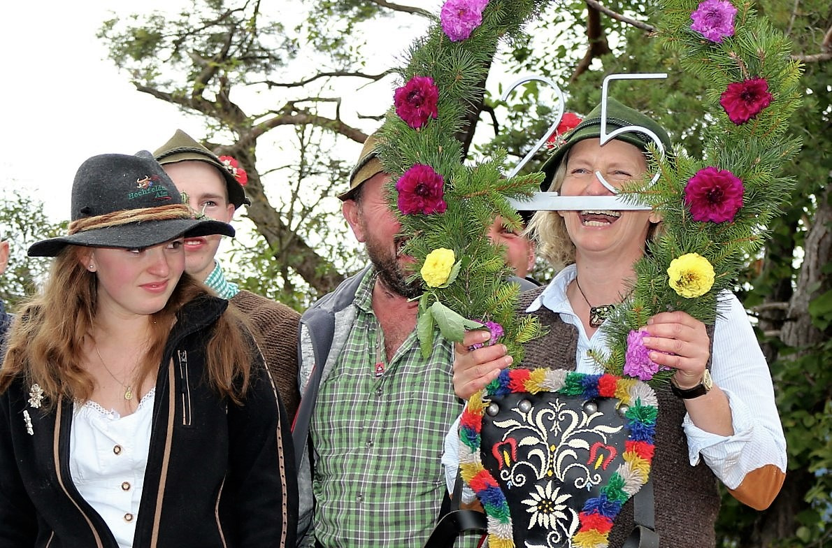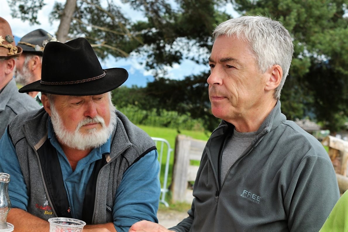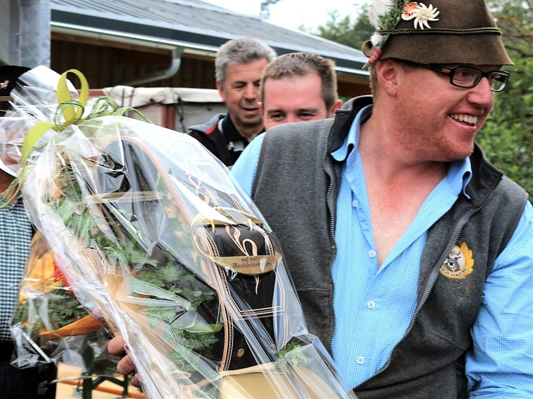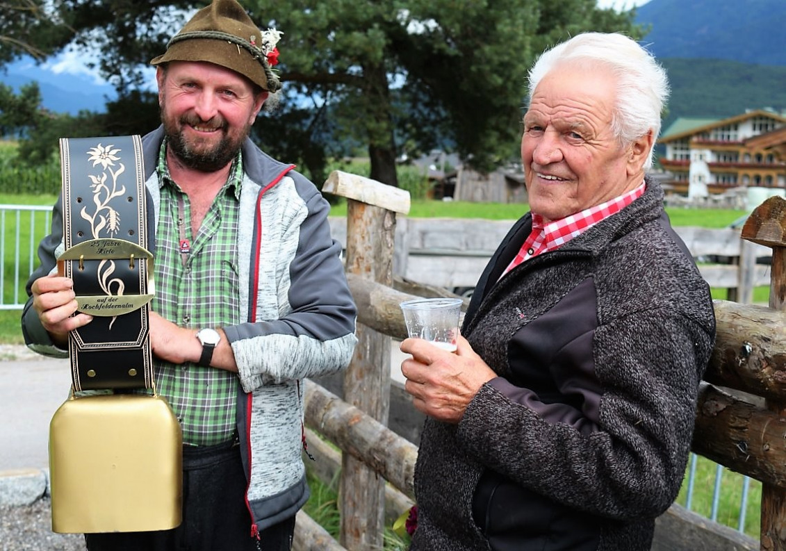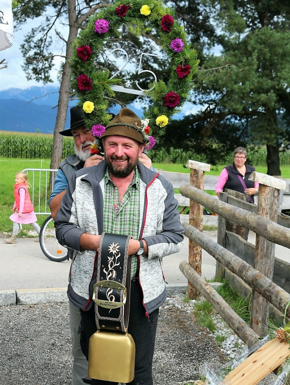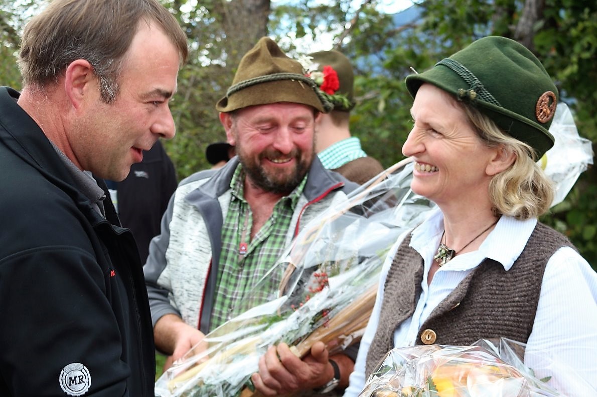 Gefreut haben sich die Kluckners und die Obermieminger Bauern über “unsere Kollegen und deren Familien aus den anderen Ortsteilen unserer Gemeinde, die es sich nehmen lassen, an unserer Seite zu sein”. Die Althirten, die Almobleute der Nachbar-Almen.