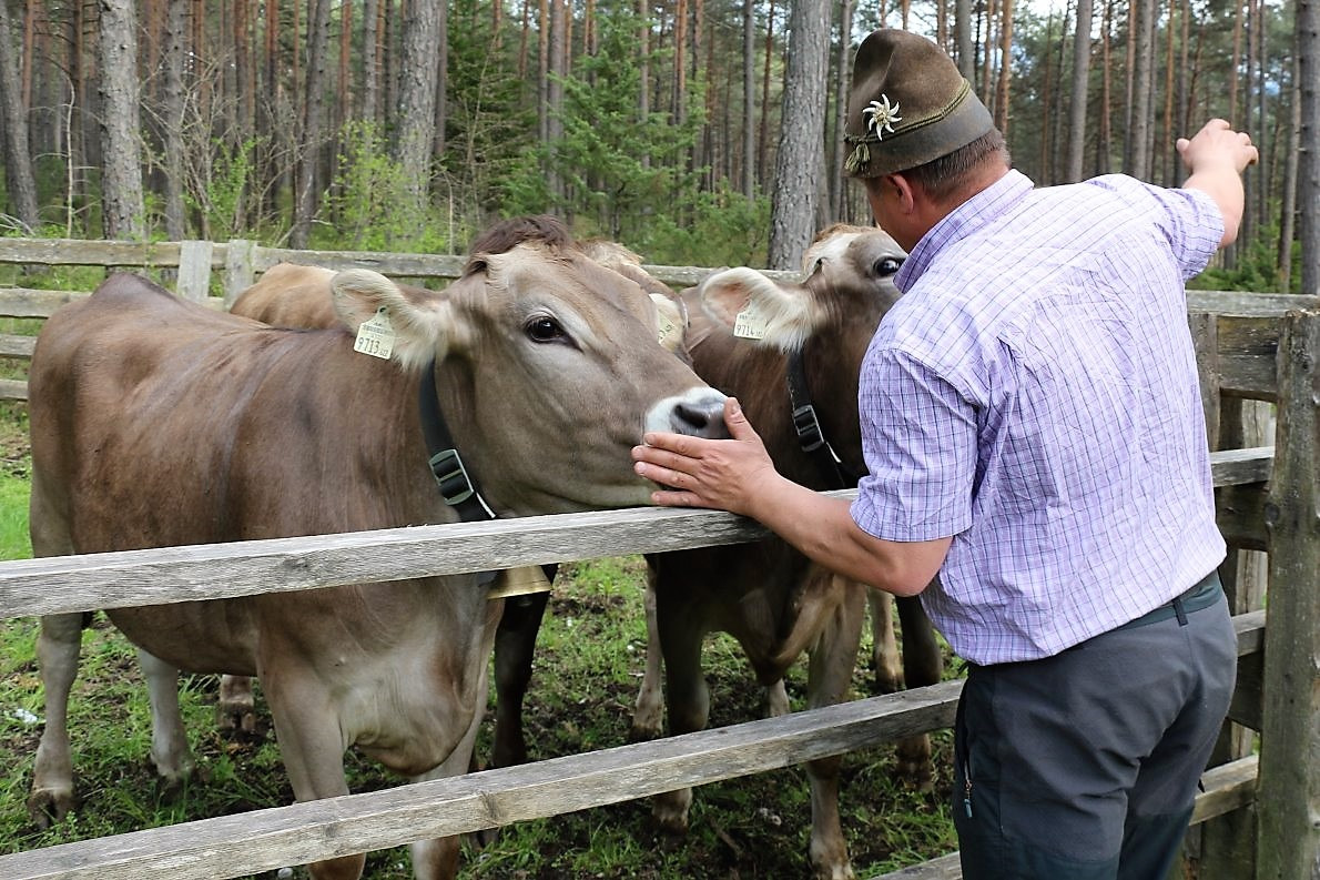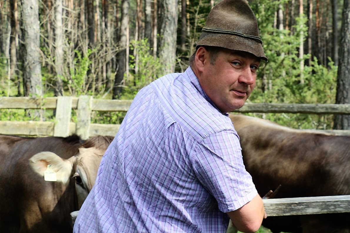 Almmeister Benedikt van Staa: „In Biberwier haben wir ca. 200 Quadratmeter zusätzlich gepachtet. Mitte bis Ende Juni wird unser Vieh dann von beiden Vorbergen auf den Marienberg getrieben. Am Joch treffen sie sich und fressen sich so wieder zusammen.“