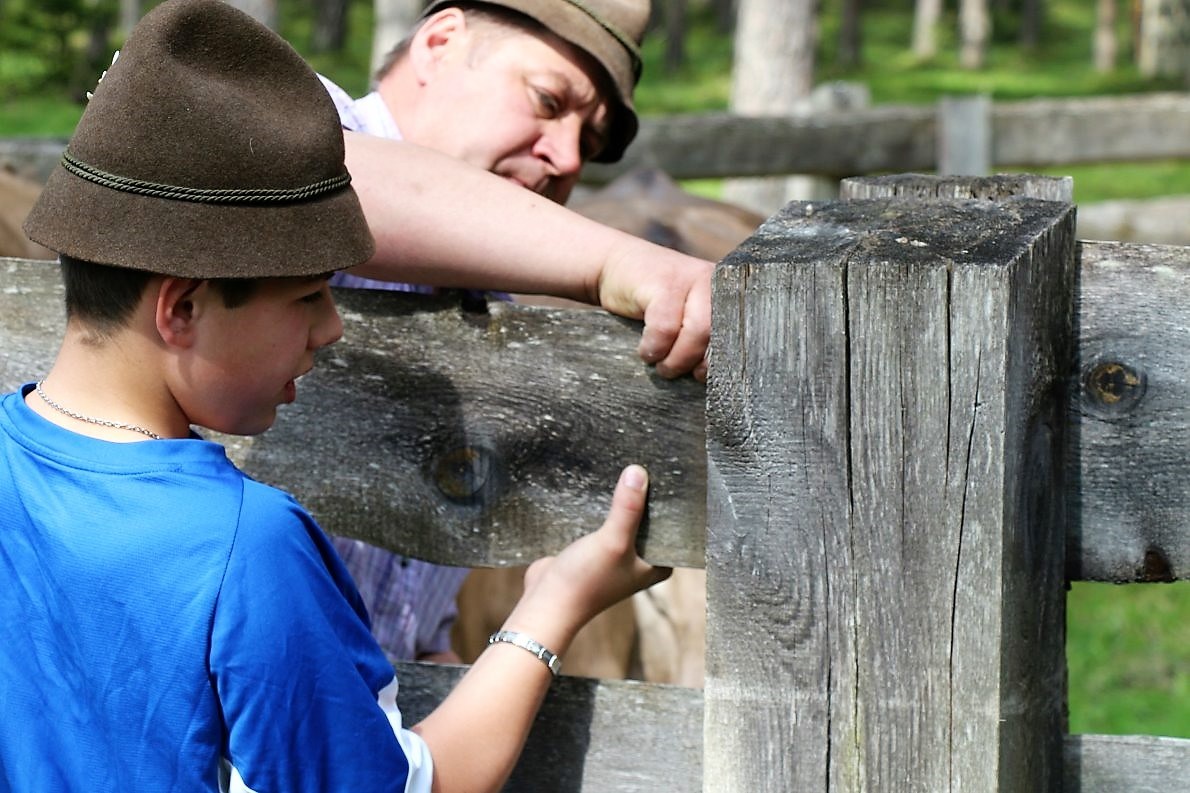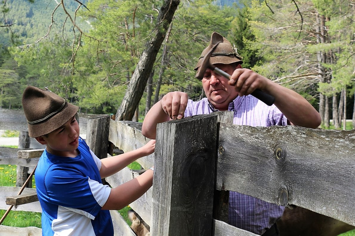 Nachdem die ersten Ankömmlinge allesamt angekommen sind, öffnet der 13-jährige Daniel das Gatter. „Wie alt bist du inzwischen?“ – Original-Ton des Almhirt-Assistenten: „Ich bin 13, werde aber schon bald 14.“ Erinnerungen werden wach. So jung, macht man sich gerne älter. Später ist es dann umgekehrt.