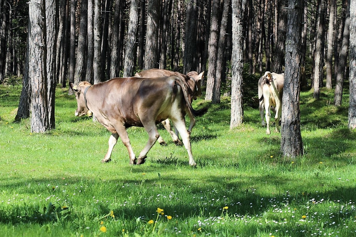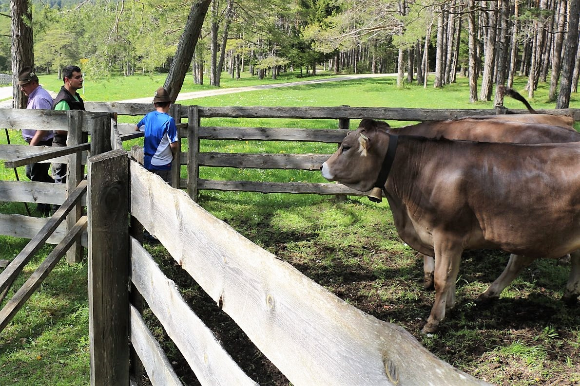 Der erste Transport erreicht die Ausläufer des Mieminger Vorberges der Marienbergalpe. Das ist bei den Moosalmwiesen in Barwies, bis zum Bereich Kohlplatzl. Aber erst einmal geht es in ein Gatter. Dann dauert es nur wenige Minuten, bis sich das Vieh mit der veränderten Umgebung vertraut machen konnte. Spätestens dann machen sie kleine und große Freudensprünge. Ihre Freude ist ansteckend.