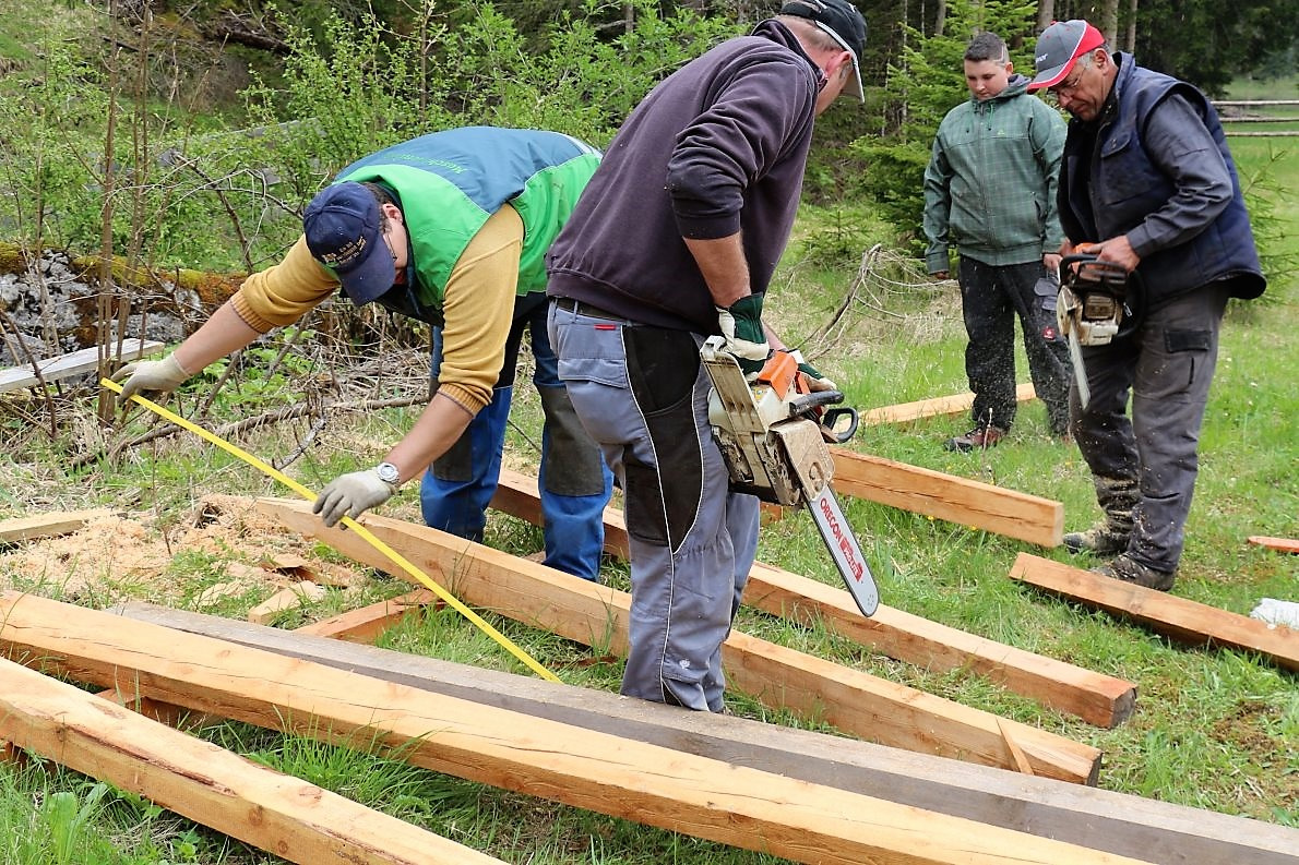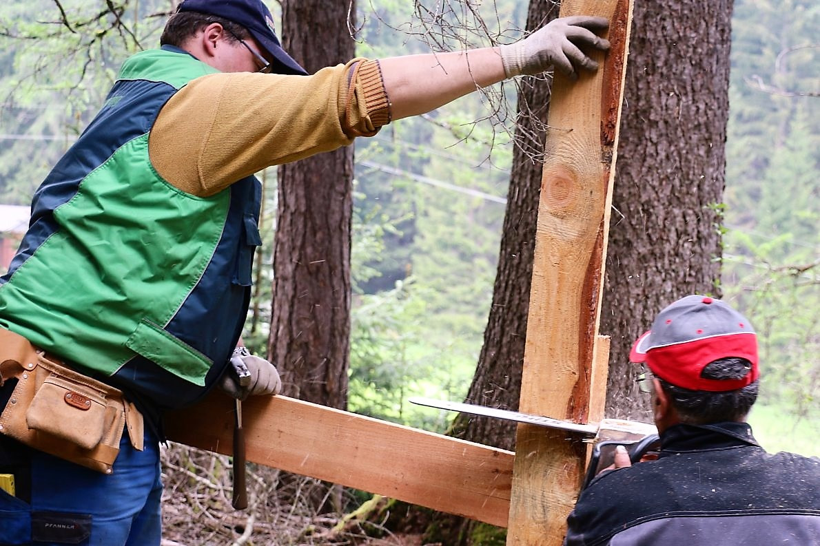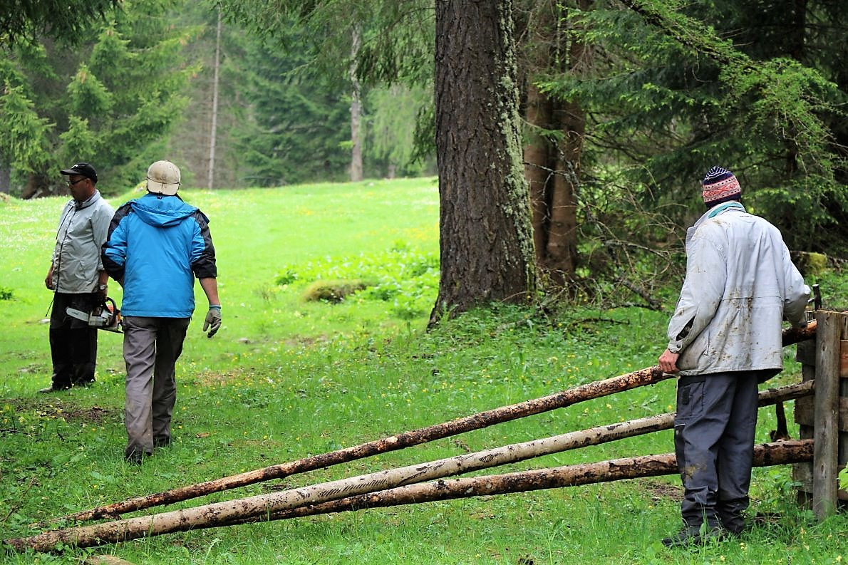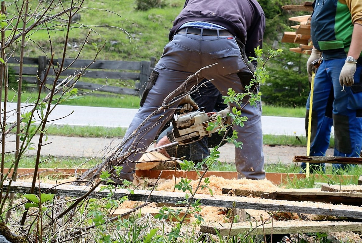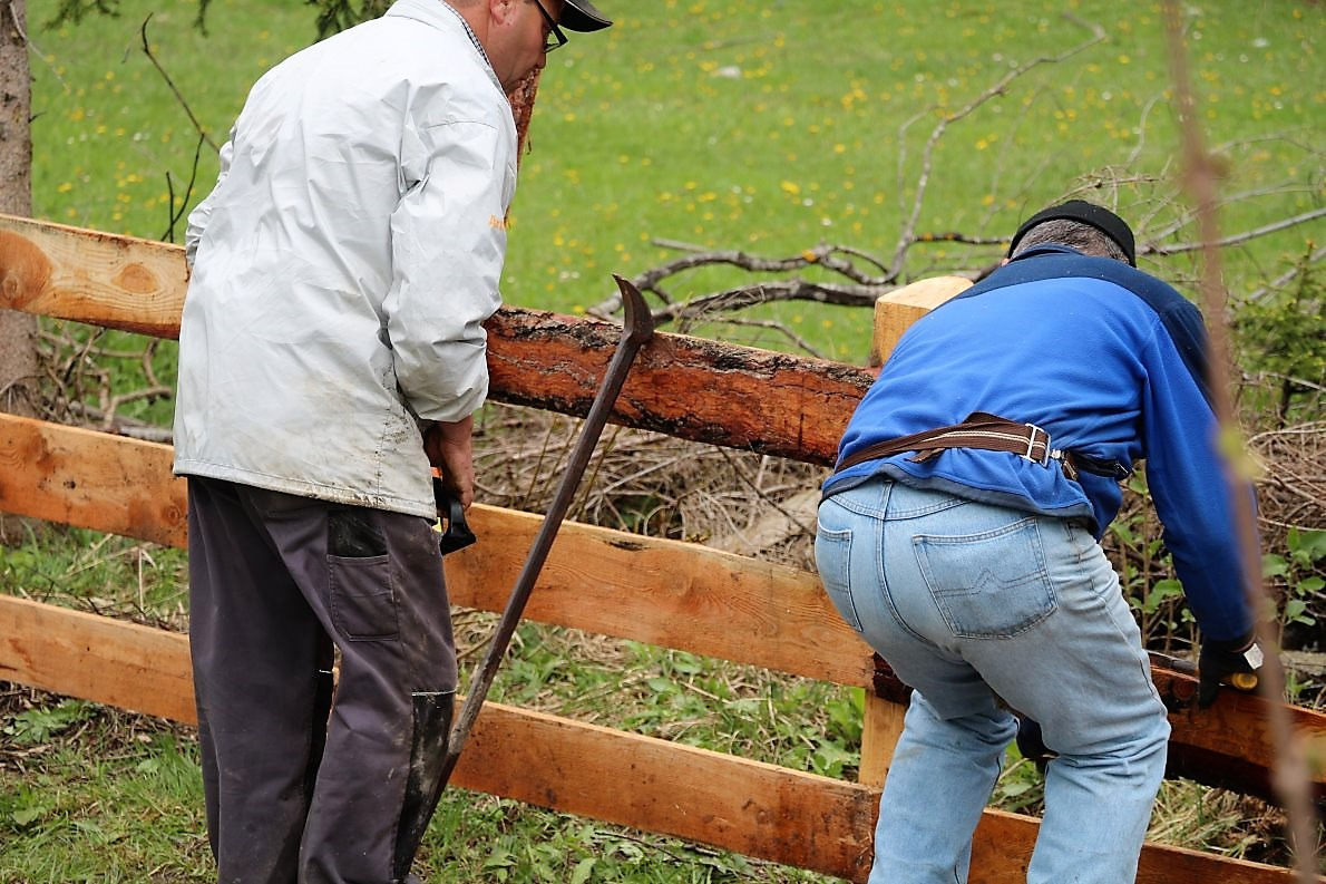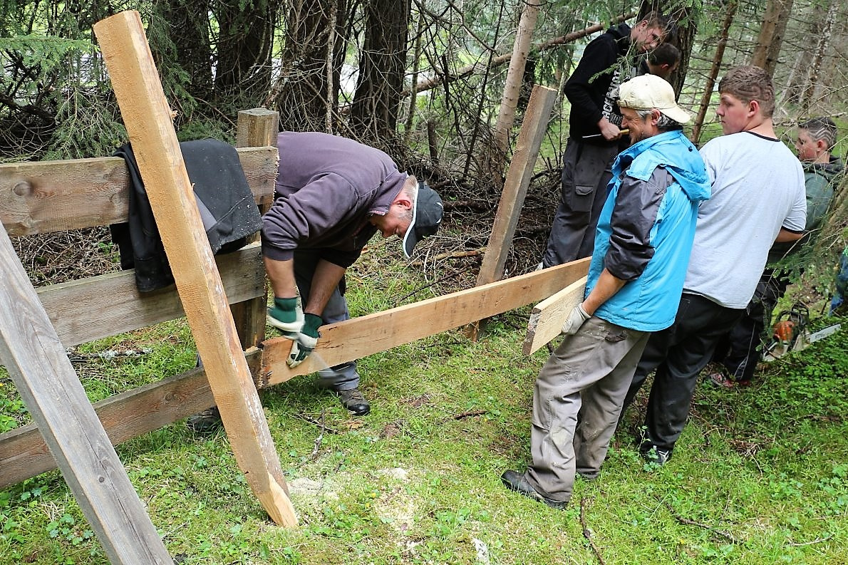 Aber alle tragen das Holz auf ihren Rücken. Bessern aus, legen das Bruchholz zur Seite. Das geht an die Bauern in Biberwier zurück. „Das gehört ihnen. Die Biberwierer liefern auch das frische Holz“, sagt der Almmeister. „Wir sind für die Zäune verantwortlich.“ Der Pflichtenkatalog ist ausgewogen.