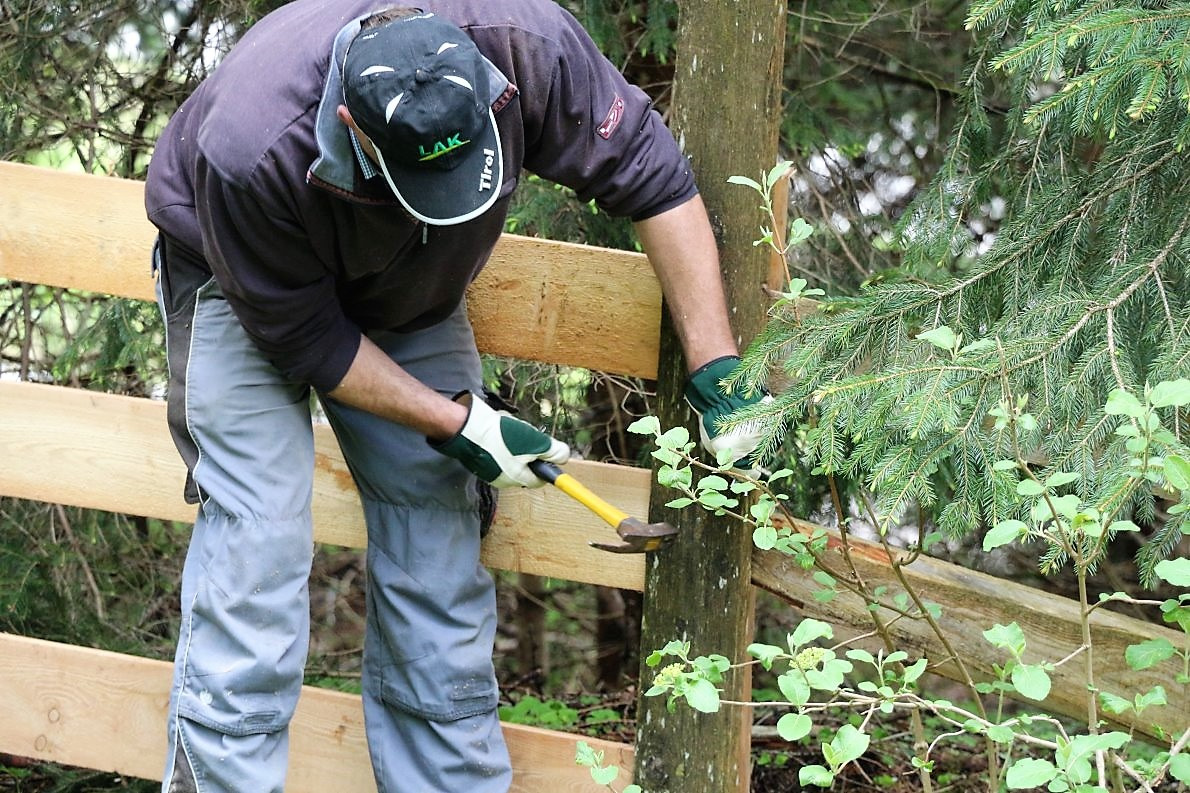Über vier Kilometer lang ist der Biberwier-Zaun. Um 8 Uhr in der Früh gehts los. „Wir müssen heute fertig werden“, sagt der Almmeister. Das Wetter ist gut. Nicht zu warm und nicht zu kalt. Kein Regen. „So haben wir das gerne“, sagte der Pirpamer Max und zeigte zum Himmel.