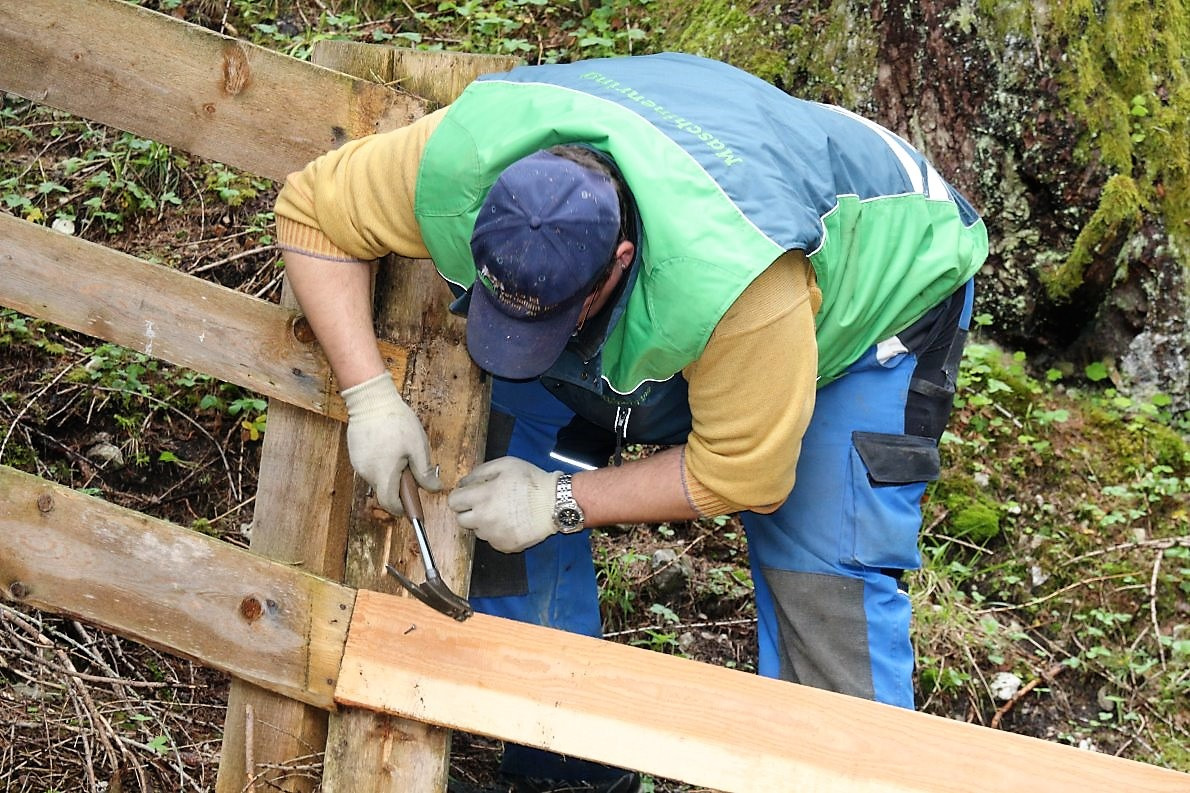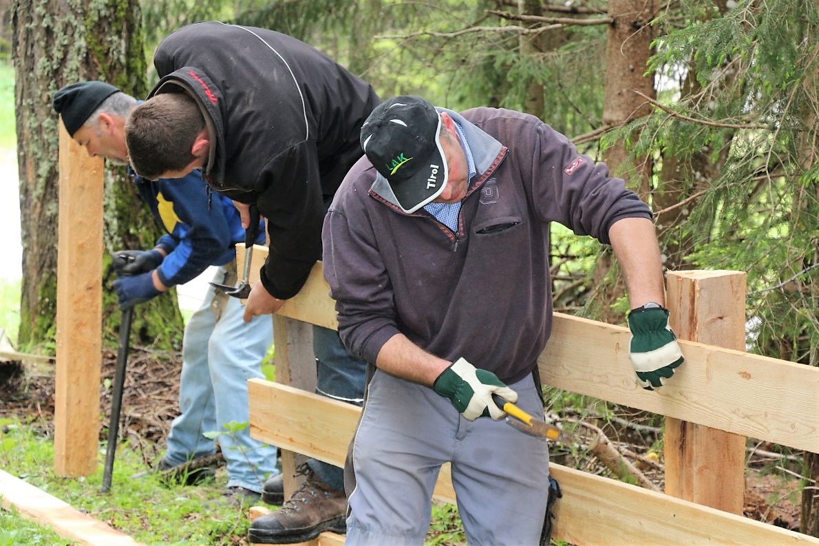 Zäunen auf der Biberwier-Alm – „Viele Handgriffe ergeben ein Ganzes“. (Fotos: Knut Kuckel)