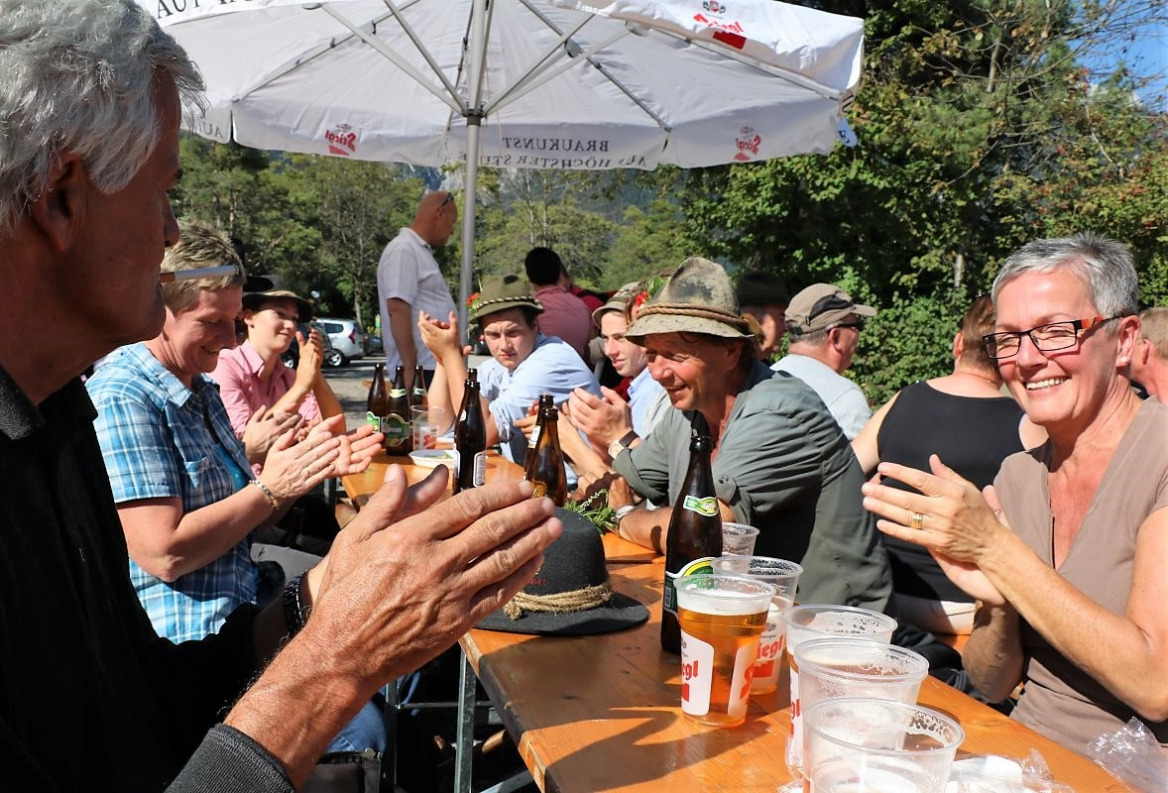 Erster Gratulant war Bauernobmann Benedikt van Staa, der zu gleicher Zeit in kleinem Kreis mit seinen Hirten und Bauern in Barwies den erfolgreichen Almabtrieb von der Marienberg Alm feierte. „Das war für uns alle in vielerlei Hinsicht ein schwieriger Sommer. Die Schäden eines Murenabgangs am Marienbergjoch mussten beseitigt werden und das war für uns nur mit großem persönlichen Einsatz zu bewerkstelligen.“