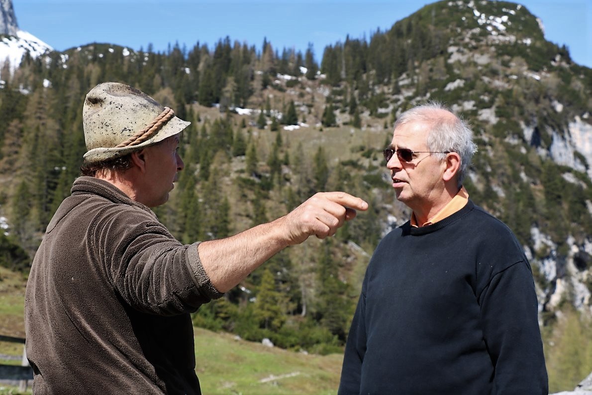 Gastgeber waren Armin Falch, Obmann der Agrargemeinschaft Seebenalpe und der zuständige Substanzverwalter der Alpe, Vize-Bürgermeister Martin Kapeller (Gemeinde Mieming). Mit dabei Alm-Hirt Gerhard Wiggins.