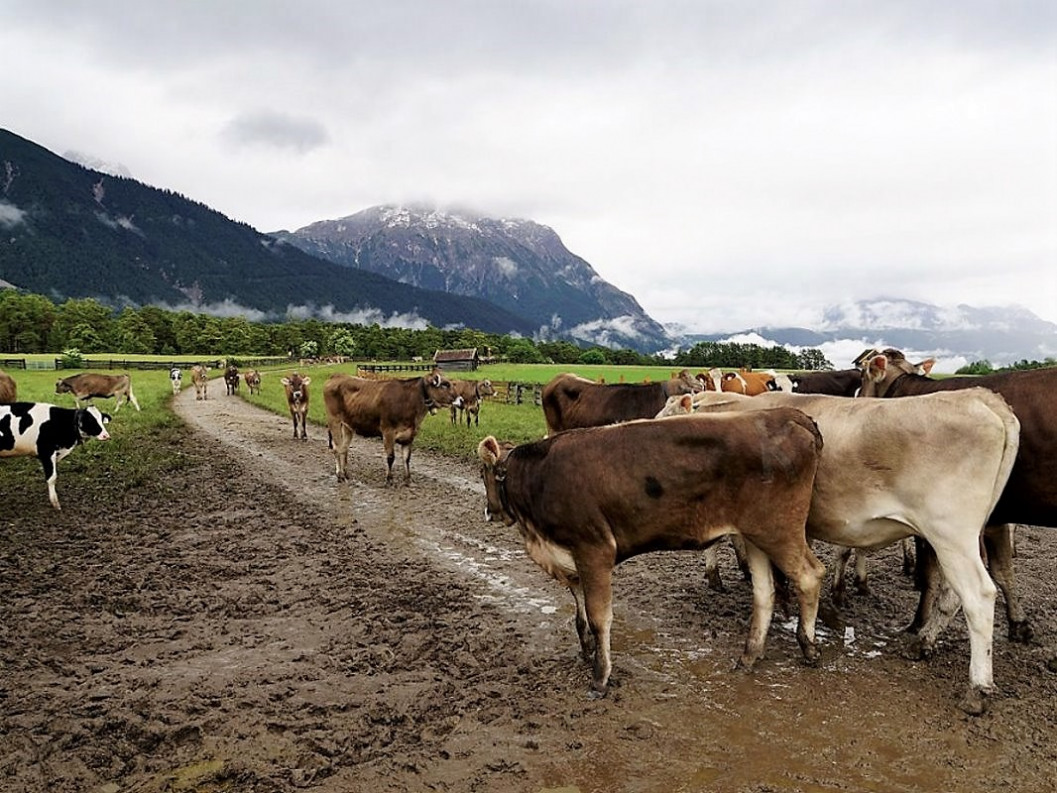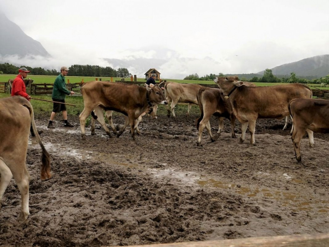 Almauftrieb von Mieming zur Feldereralpe – „Gummistiefelwetter“. (Fotos: Knut Kuckel/Andreas Fischer)