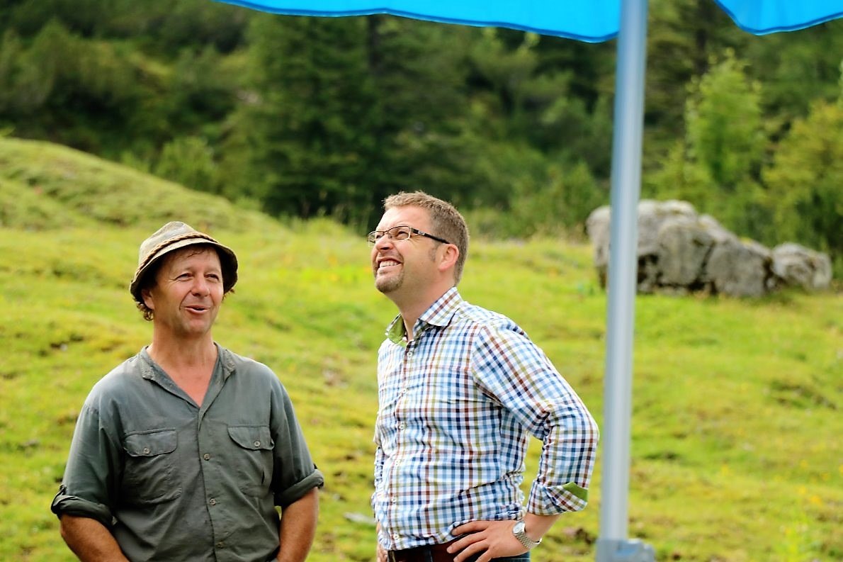 Martin Kapeller, Substanzverwalter der Seebenalpe und Vize-Bürgermeister der Gemeinde Mieming besuchte am Samstag, dem 23. Juli 2013 die Alm, um sich vor Ort ein Bild von den bislang geleisteten Arbeiten zu machen. Für das gesamte Bauprojekt wurde eine Investitionssumme von 70.000 Euro veranschlagt.