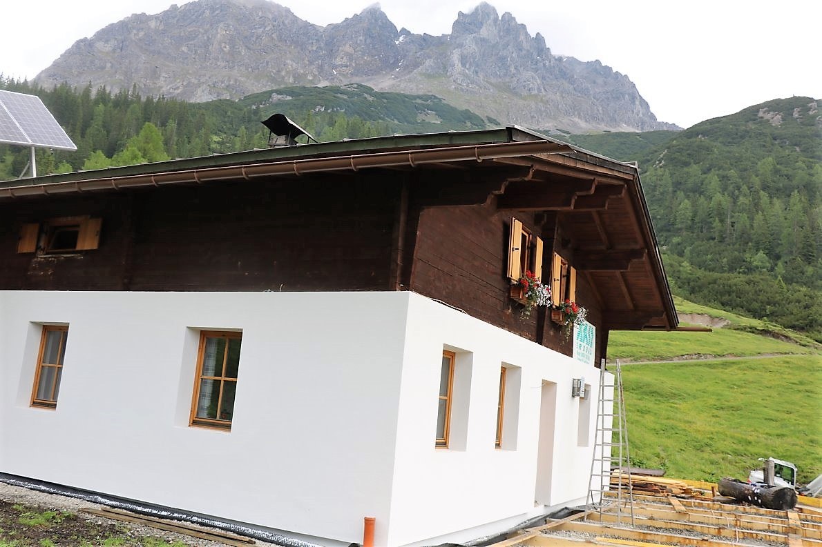 Sanierung Marienbergalpe – Bis zum Almsommer soll alles fertig sein. (Fotos: Knut Kuckel)