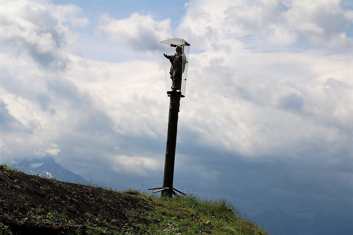 Wer die Marienberg Alm besucht, kann dort jetzt Hut und Anstecknadel erwerben. „Zu einem fairen Preis“, sagt der Hüttenwirt und zeigt uns am geheizten Hüttenofen, was man dafür bekommt. Bei unserem Besuch auf der Marienberg Alm war es gestern regnerisch und für die Jahreszeit noch recht kühl. „Kein Postkartenwetter“, sagt ein enttäuschter Wanderer, der mit seiner neuen Kamera auf ein paar Sonnenstrahlen wartete.