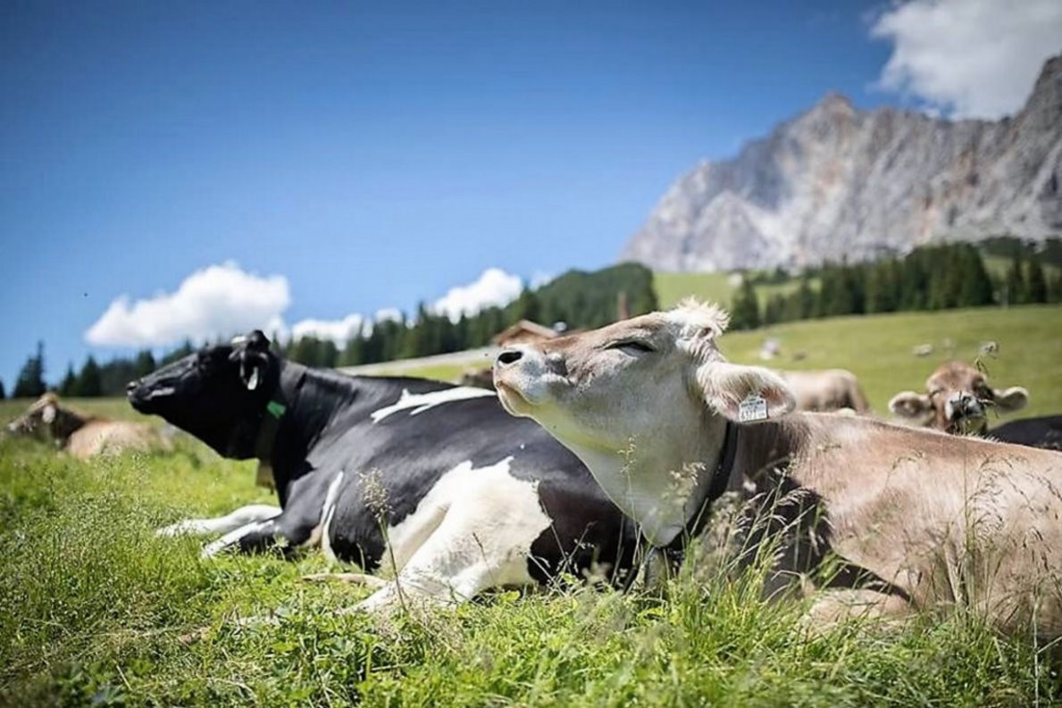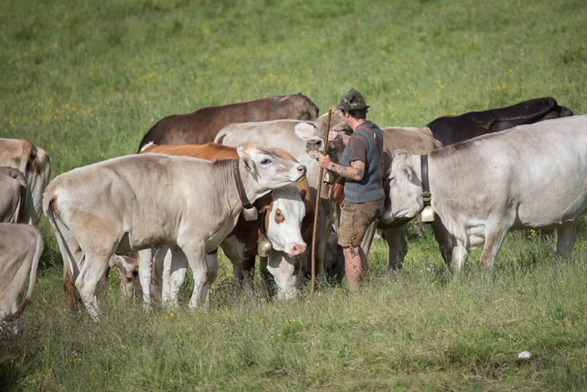 Ihre Feuertaufe als echte Almhirten haben sie längst hinter sich. Zu dem Almvieh sind inzwischen eigene Milchkühe dazugekommen. So war das früher immer, auf der Feldereralpe. „Wir melken, buttern und machen Graukas“, funkt er zu uns nach Mieming.