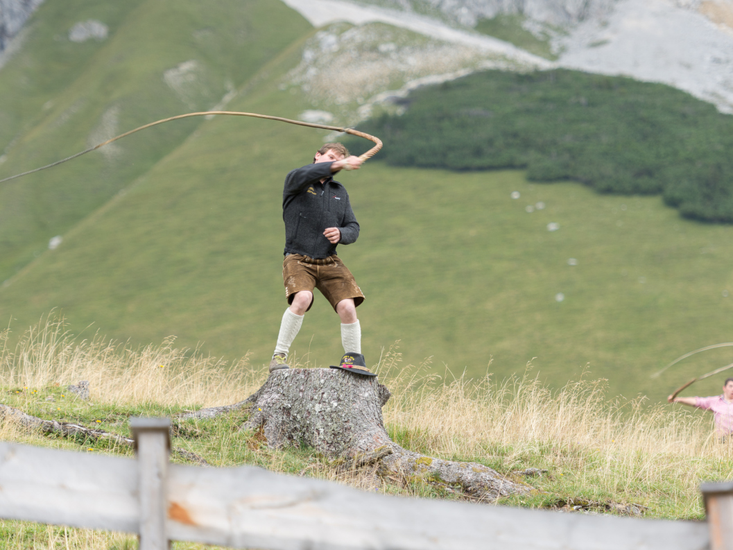 Zum Almfest spielten die Mieminger Musikanten alpenländische Blasmusik. Der Trachtenverein Edelweiss Mieming zog alle Register seines Könnens und die Längenfelder Schnöller ließen das alte Brauchtum des „Goaslschnöllens“ hochleben. Die Goaßl wurde in Tirol überwiegend zum Viehtreiben verwendet und half den Hirten sich auf den Almen zu verständigen.