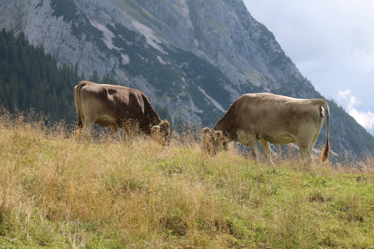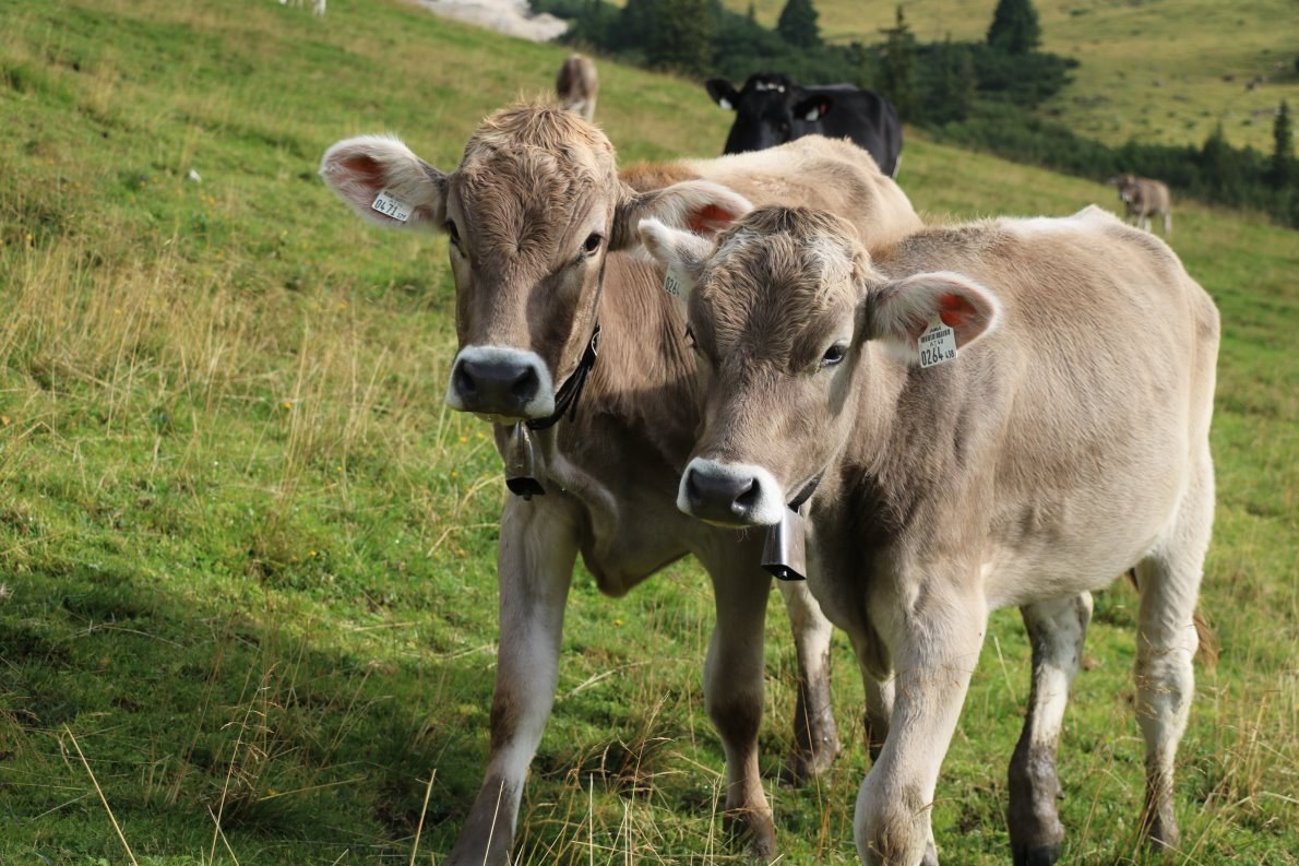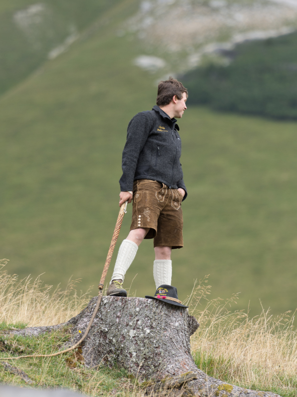 Auf der Feldernalm weiden heuer 238 Stück Vieh. Im Stall halten die Almhirten und Pächter der Hochfeldernalm – Martin Reich und Fabio Riml – neun Kühe zur erfolgreichen Produktion von Almmilch, Almbutter und Graukas.
