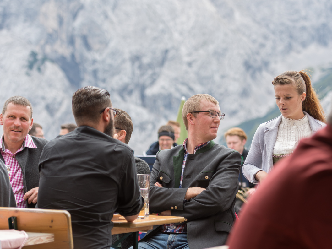 Die Almleute organisierten das ganze Fest und einen Bus-Shuttledienst, unter der Leitung von Markus Spielmann. Ab Parkplatz Leutasch fuhren den ganzen Tag über zwei Busse in insgesamt 15 Touren weit über 100 Gäste zur Hochfeldern Alm und wieder zurück.