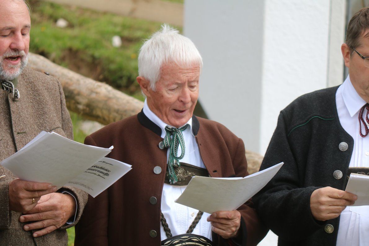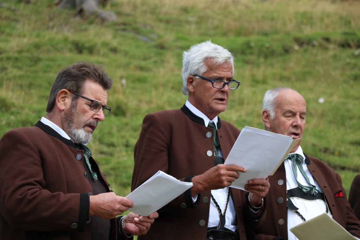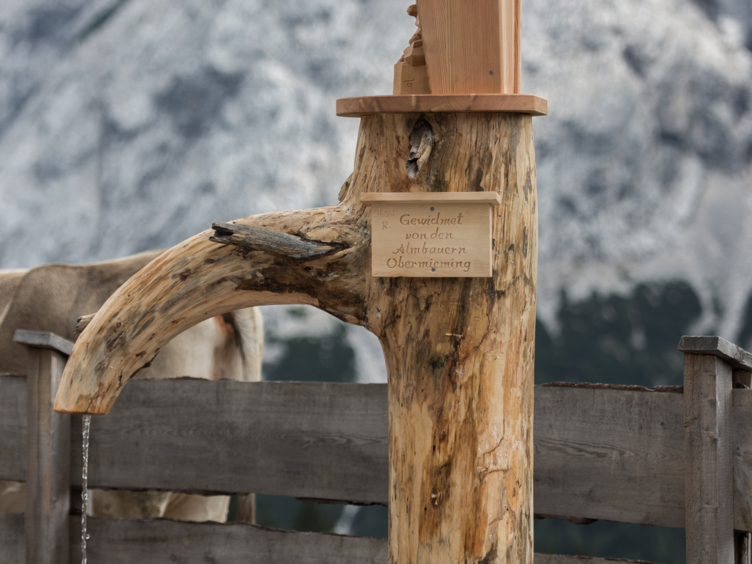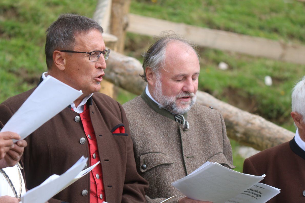 Abt Mag. Raimund Schreier (Stift Wilten) feierte die Almmesse. An seiner Seite Frater Pius, ein geistlicher Gast aus Polen. Für die musikalische Messgestaltung sorgten die Mieminger Sänger, unter der Leitung von Hans Holzeis, mit Unterstützung der Mieminger Weisenbläser. Im Anschluss an den Gottesdienst segnete der Wiltener Abt den neuen Lärchenholz-Brunnen der Hochfeldern Alm, den der Holzschnitzer und Bildhauer Reinhard Thöni aus Pfunds gestaltet hat. Auf einer Holztafel steht: „Gewidmet von den Almbauern Obermieming“. Die Idee dazu hatte Martin Spielmann.