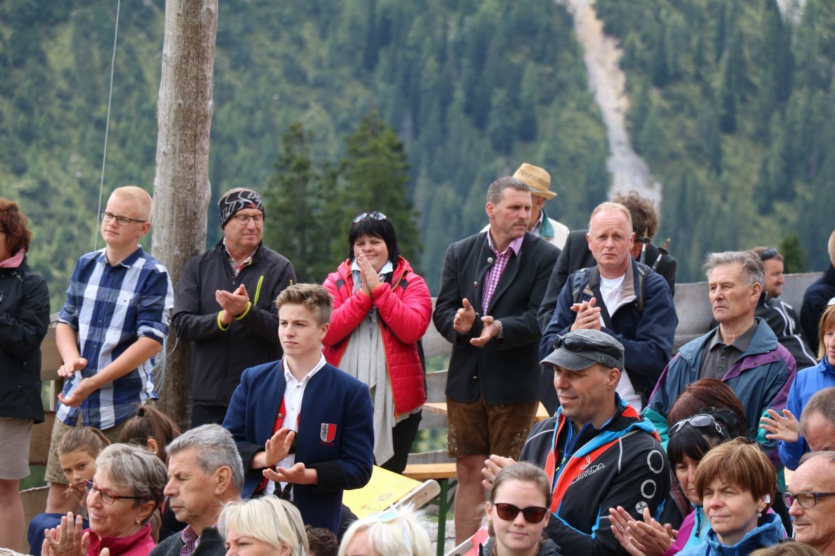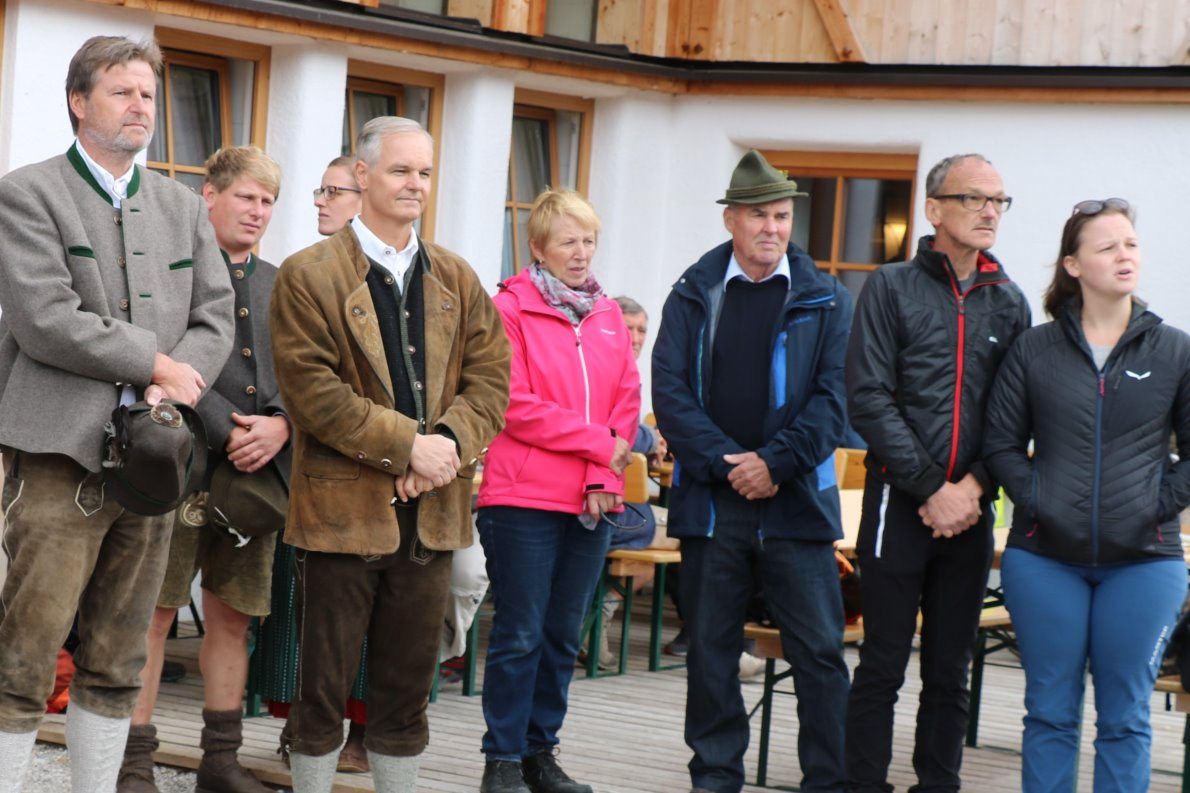 Almbeauftragter der Gemeinde Mieming ist Vize-Bürgermeister Martin Kapeller, der eine Vielzahl bekannter Gäste begrüßte. Darunter Klaus Stocker, Bürgermeister der Gemeinde Wildermieming, Dr. Franz Dengg, Bürgermeister in Mieming, Jagdpächter Kai Illg mit Aufsichtsjäger Paul Thurner aus Inzing, Franz Dengg – Liftbetreiber der Ehwalder Almen – Ortsbauernobmann / Gemeindevorstand Benedikt van Staa (Mieming), Ortsbäuerin Barbara Spielmann, Alfred Ripfl mit Familie, von der benachbarten Tillfuss Alm der Gemeinde Wildermieming, Almobmann Andreas Scharmer und viele andere bekannte Persönlichkeiten aus Mieming.
