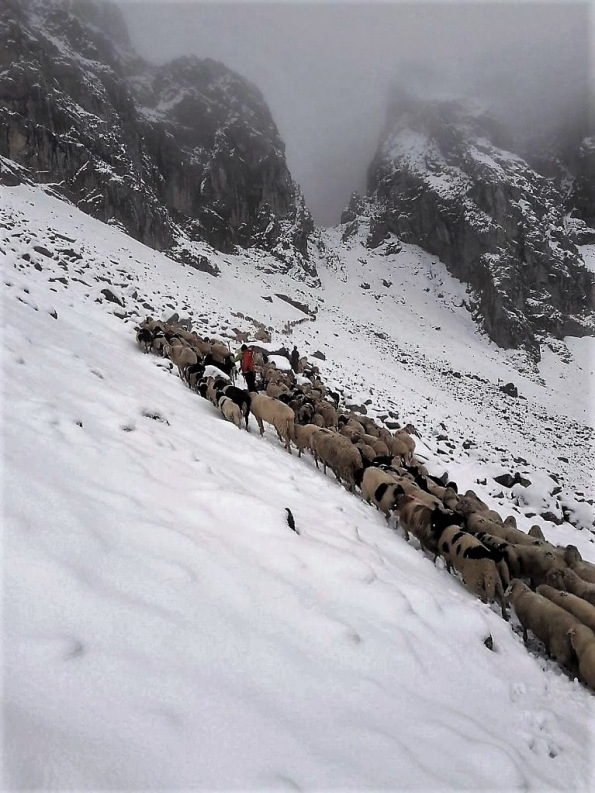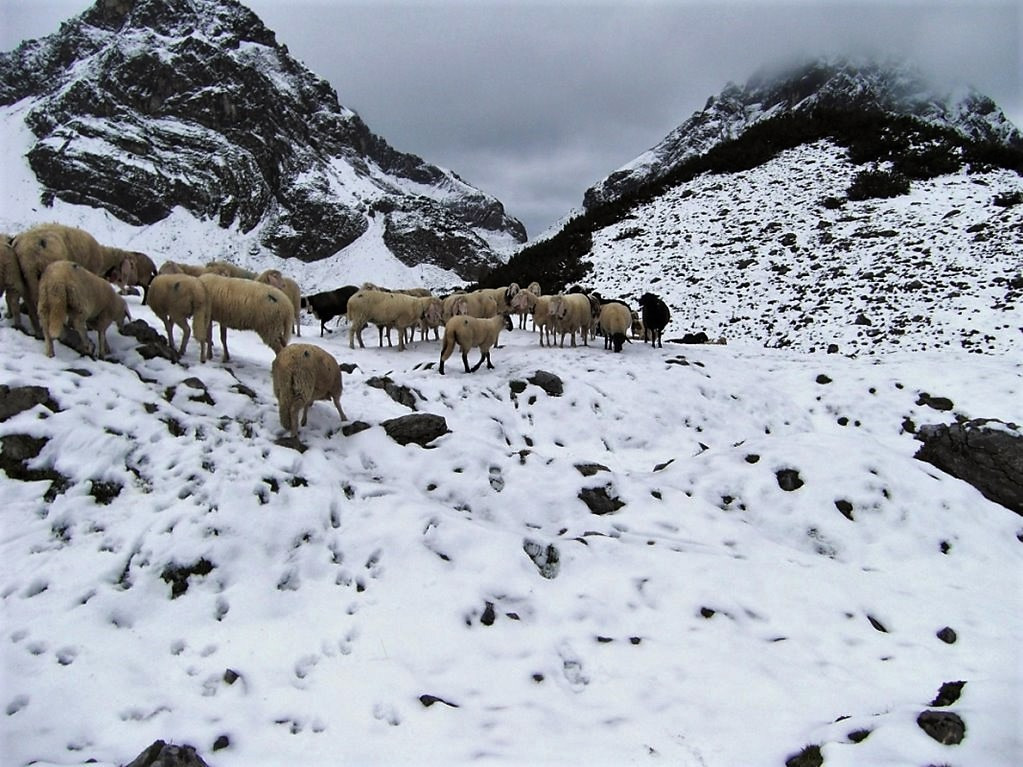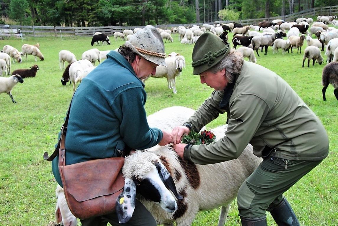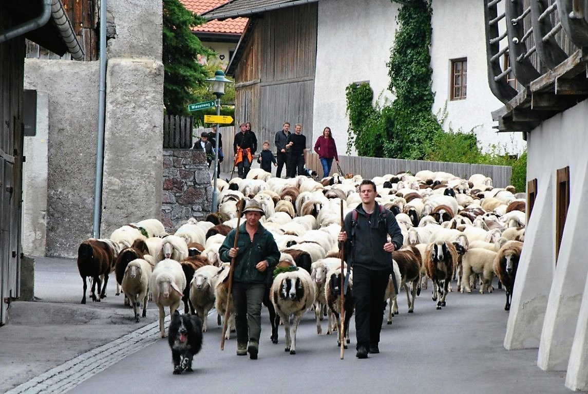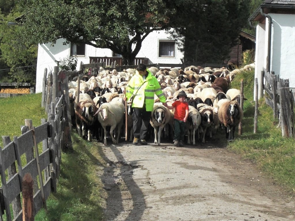 Die Schafschoad von der Seeben Alm nach Mieming dauerte heuer ganze zwei Tage. Daheim angekommen, berichteten die Hirten, „es regnete und schneite im 20-Minuten-Takt“.