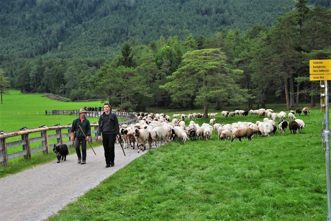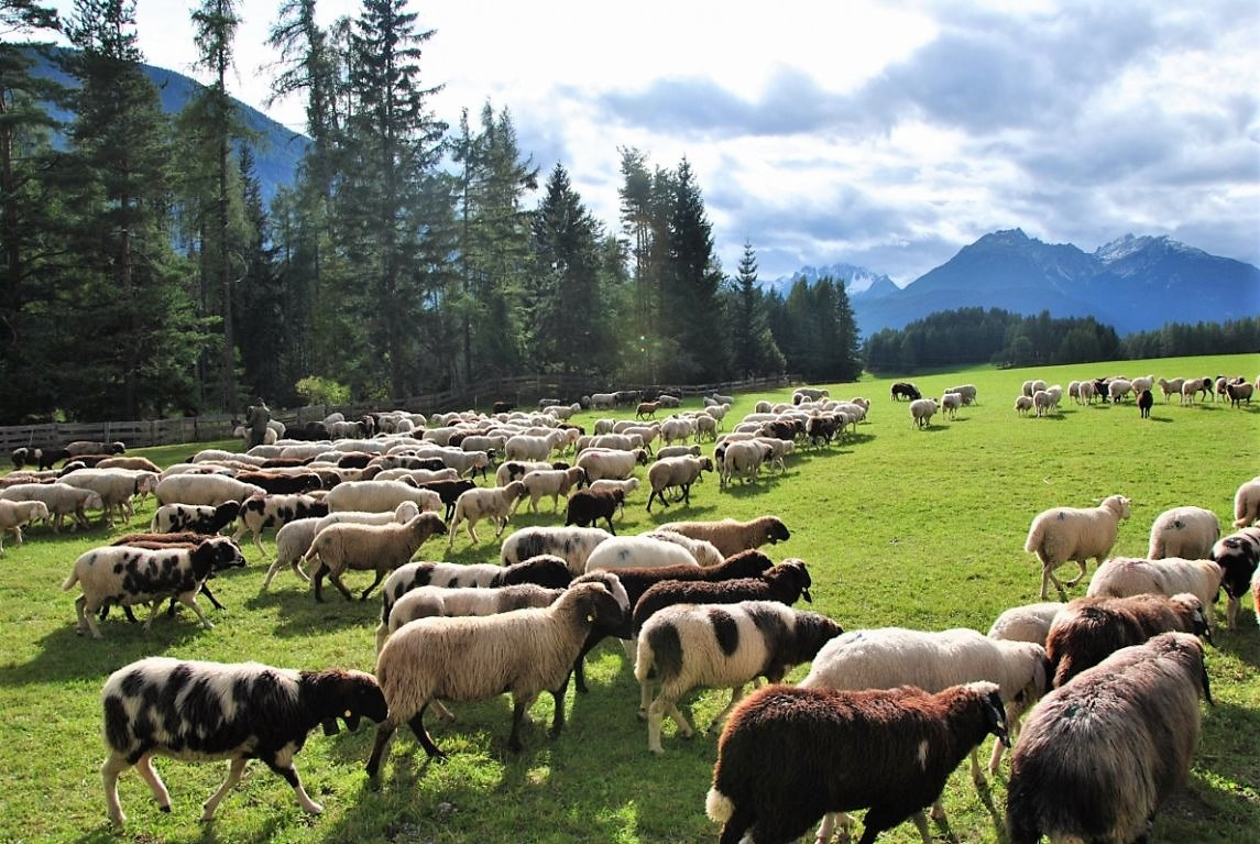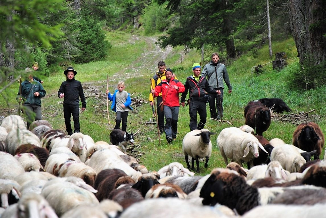 Seit Anfang Juni weiden 450 Schafe und 66 Kälber, Mutterkühe und Rinder auf der Seeben Alm. Bei der Schafschoad am Samstag, dem 16. September 2017 wurden über 400 Schafe und Ziegen von der Seeben Alm – vorbei am Seeben- und Drachensee und der Coburger Hütte – über die Grünsteinscharte zum Nachtrastplatz am Gasthaus Arzkasten bei Obsteig geführt.