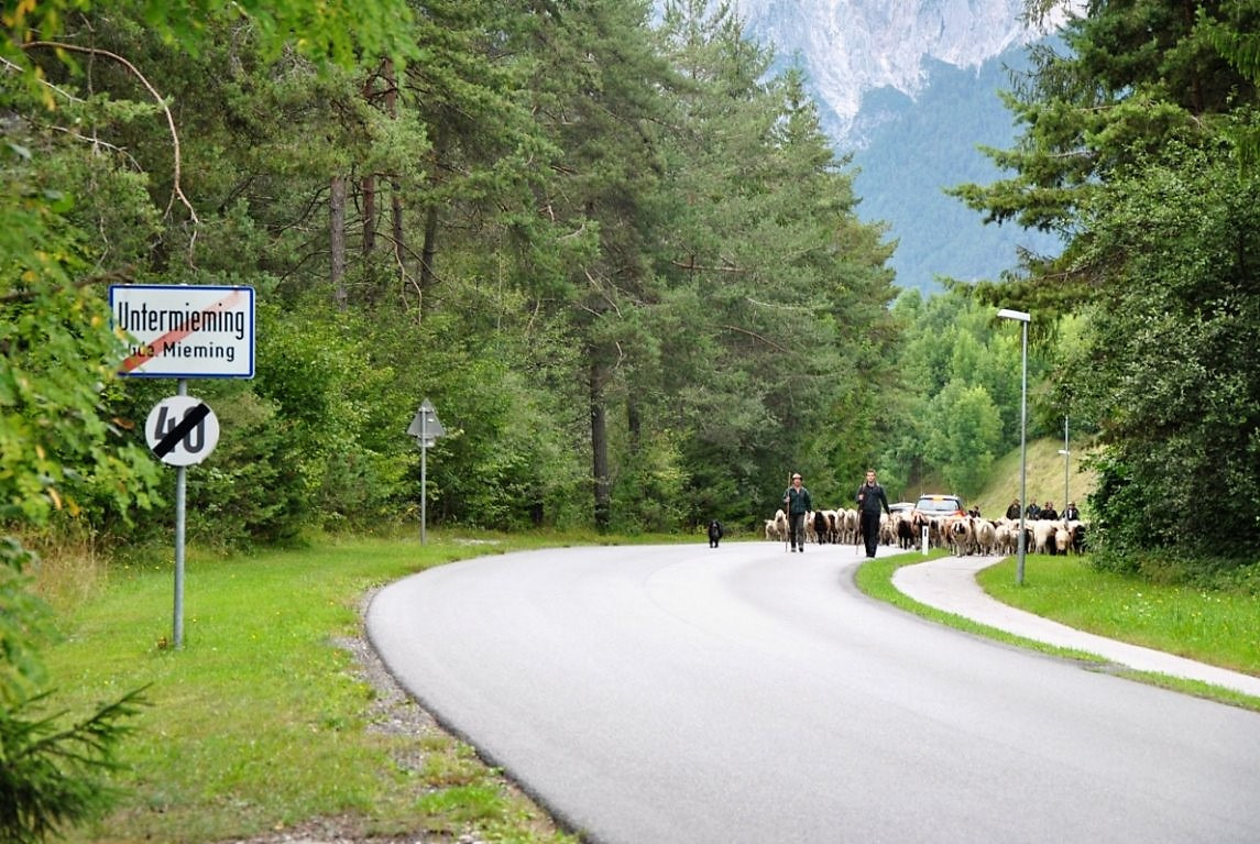 Am nächsten Morgen ging es dann weiter nach Mieming. Die Koppel beim Stiegl-Wirt in Untermieming erreichten die Hirten und ihre Tiere am Sonntag, dem 17. September 2017 gegen 14 Uhr.