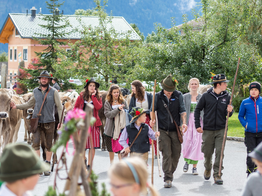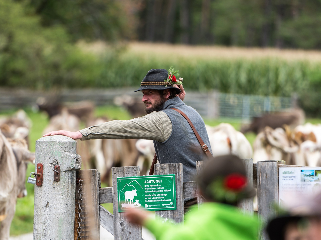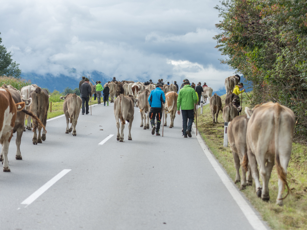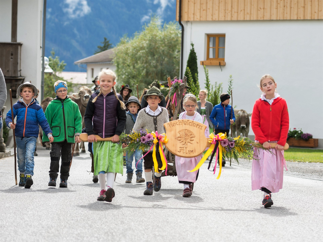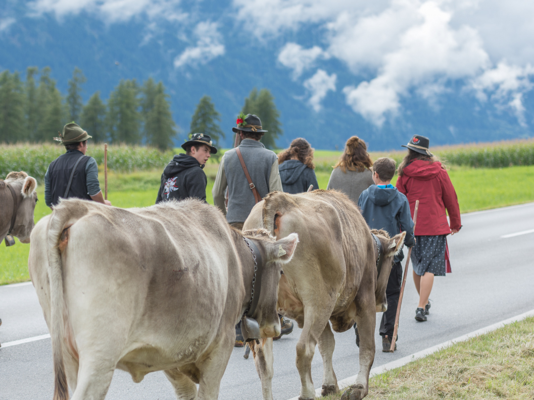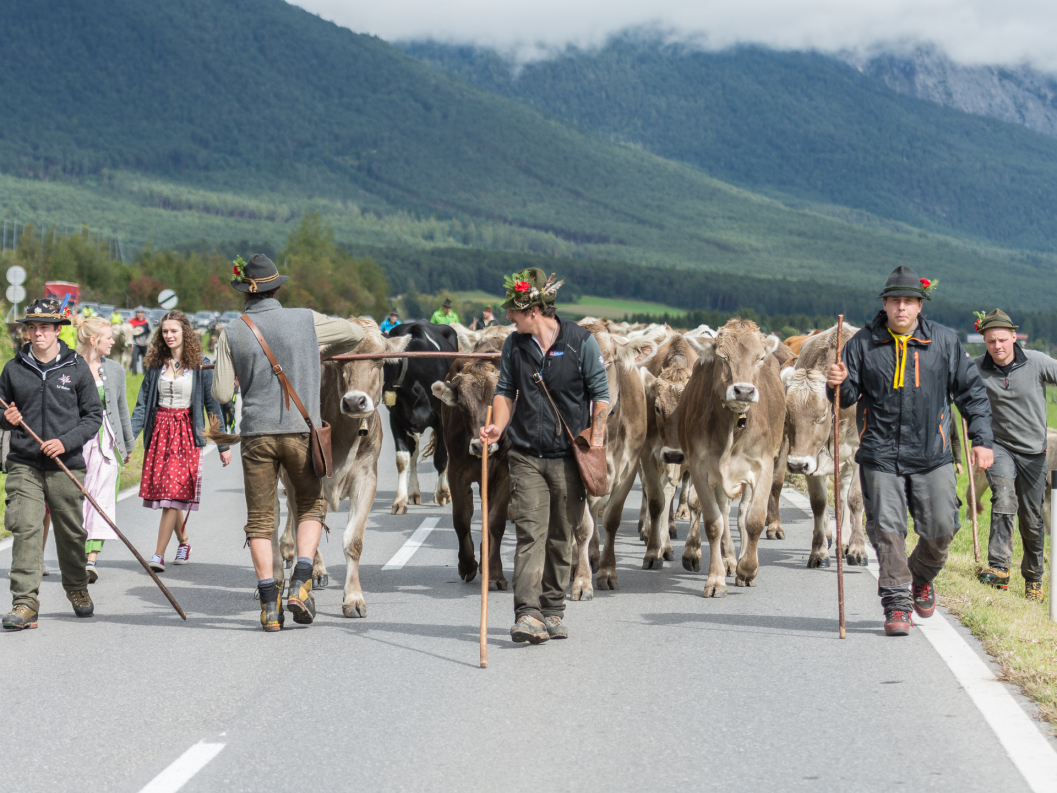 Der Almabtrieb von der Feldernalm nach Mieming wird seit mehr als 100 Jahren traditionell durchgeführt. Für die Hirten und ihr Vieh bedeutet das 35 Kilometer Wegstrecke von der Feldernalpe aus dem Gaistal/Leutasch, über Telfs und Wildermieming, nach Mieming-Obermieming. Hier bleiben die Tiere noch bis Anfang Oktober auf dem Vorberg am Kälberriegl, dann geht’s für alle zurück in die heimischen Ställe.