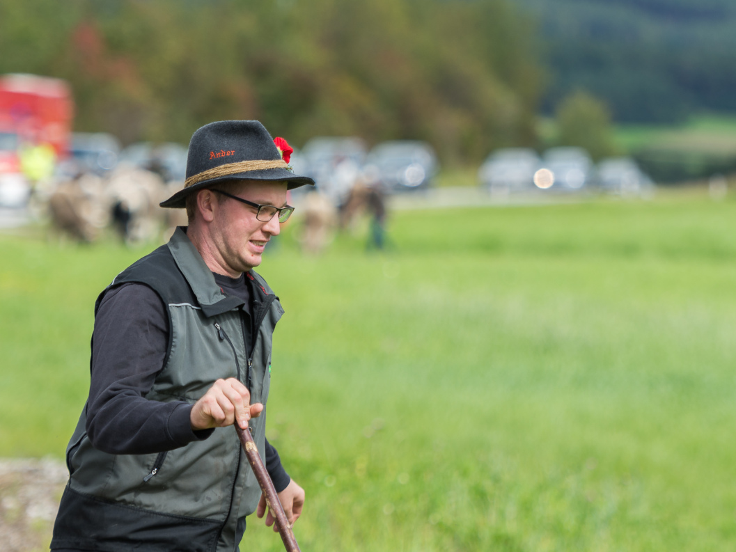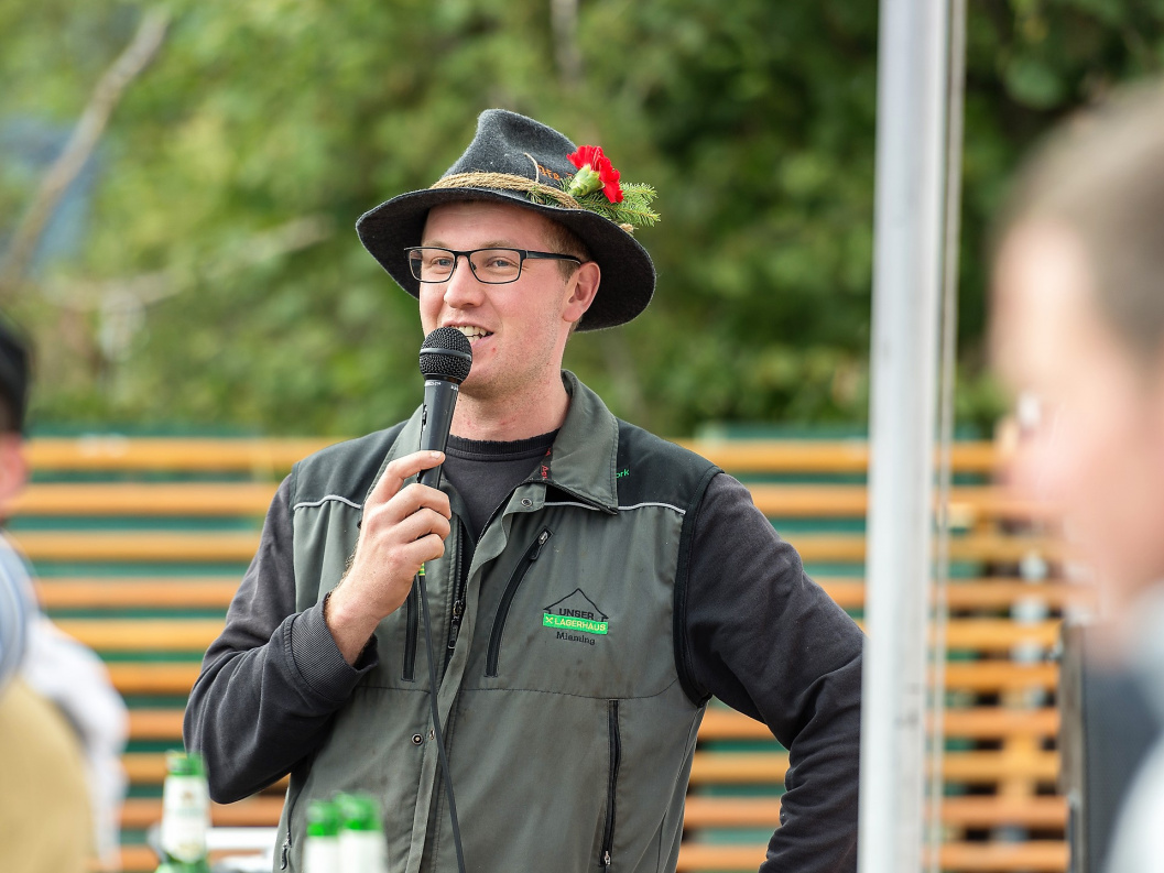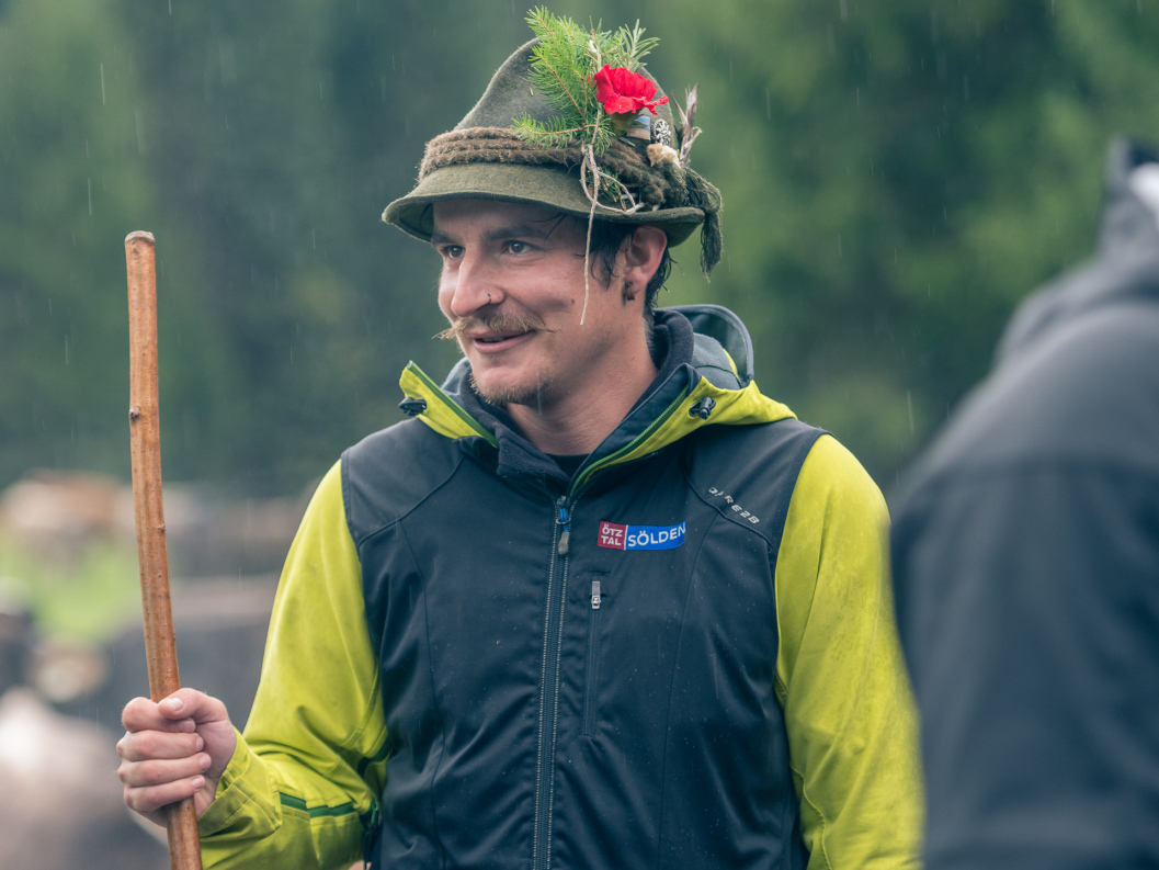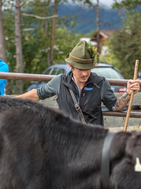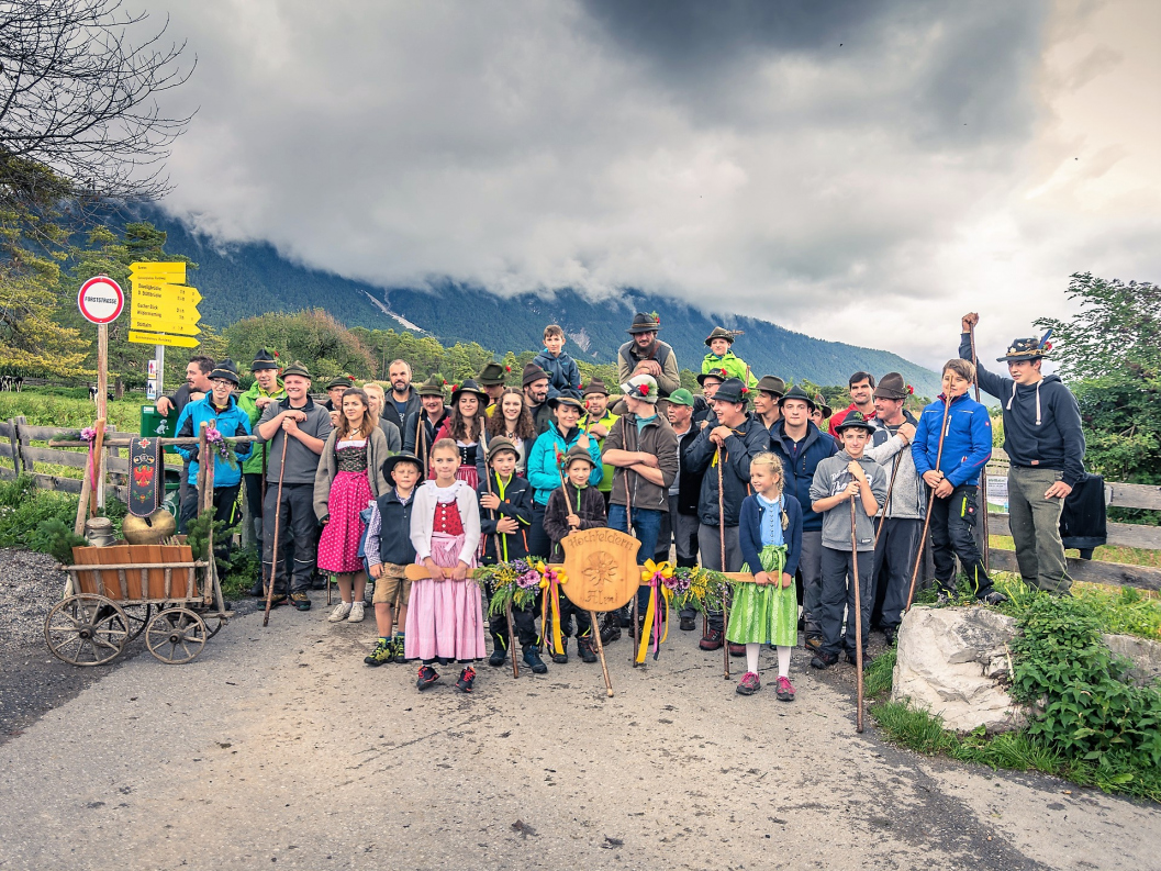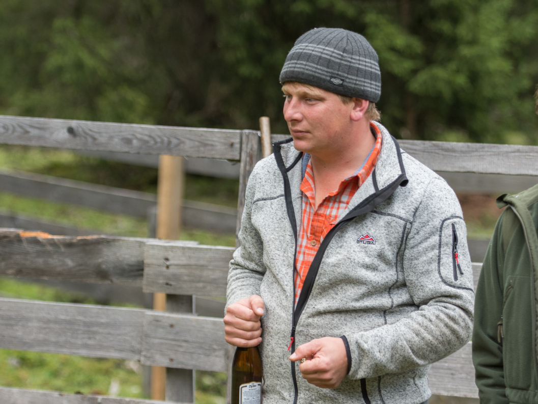 „Heuer waren 230 Stück Vieh auf der Hochfeldern Alm“, erfahren wir von Almobmann Andreas Scharmer. „Ein Teil von ihnen wurde schon in den vergangenen Tagen zurück nach Mieming geführt.“ Wetter- und Weideverhältnisse waren nicht mehr akzeptabel, so Andreas Scharmer, der als Almobmann sein Debüt gab.