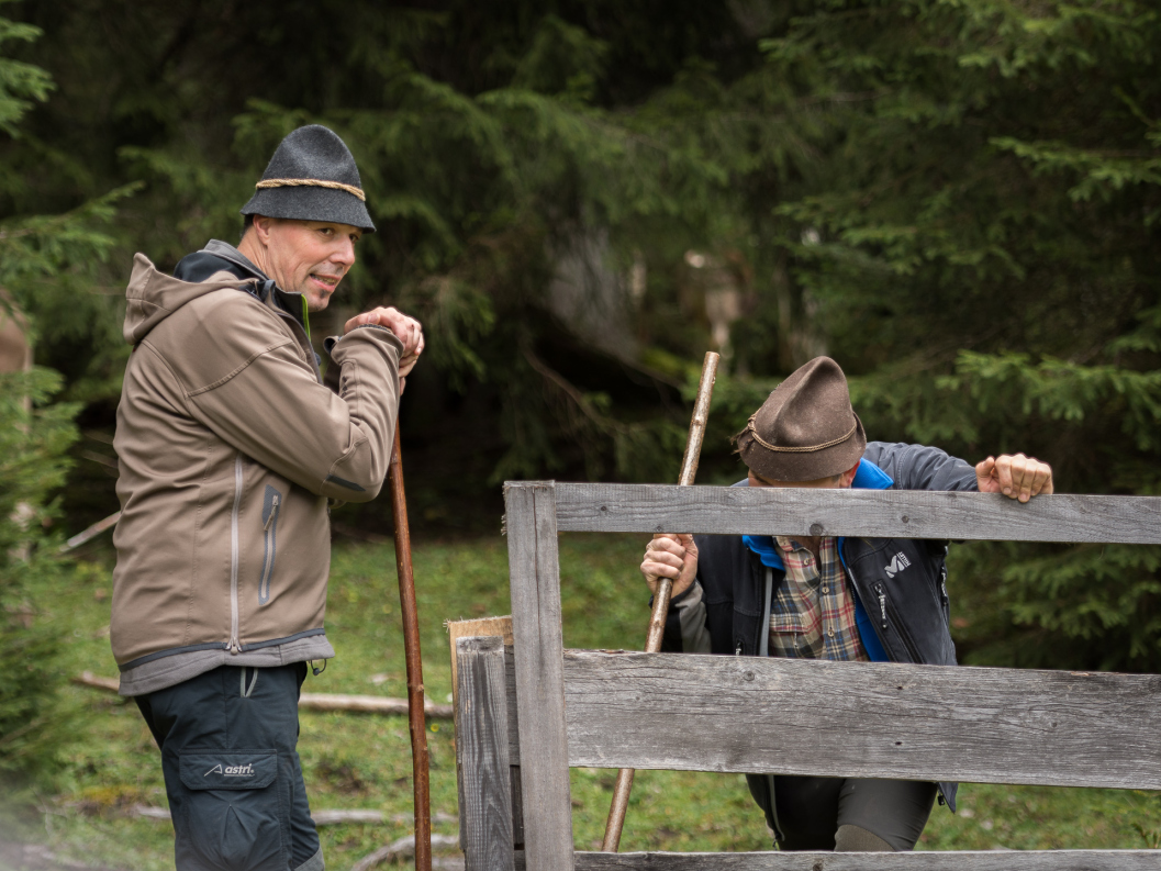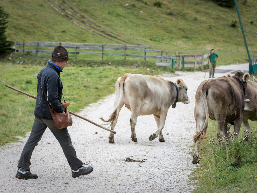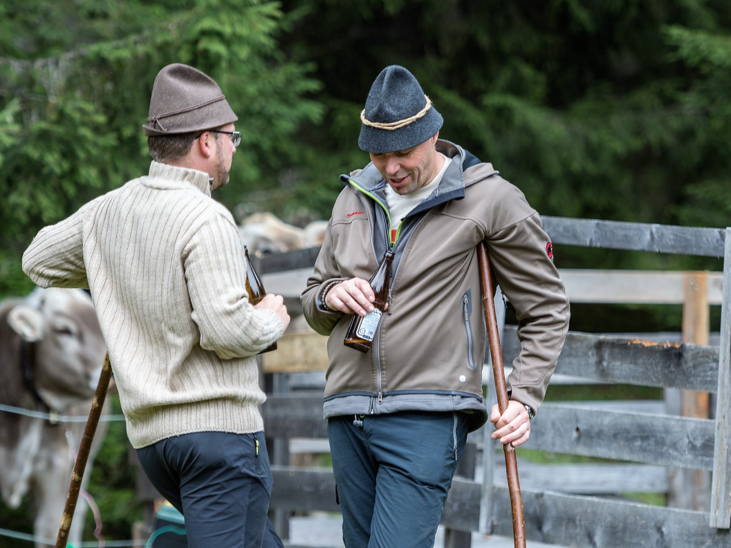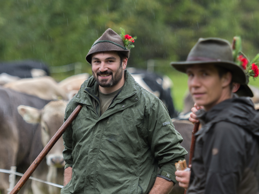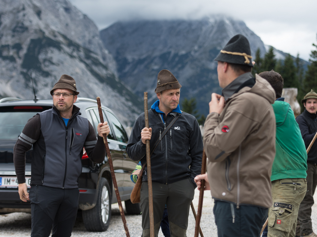 „Heuer waren 230 Stück Vieh auf der Hochfeldern Alm“, erfahren wir von Almobmann Andreas Scharmer. „Ein Teil von ihnen wurde schon in den vergangenen Tagen zurück nach Mieming geführt.“ Wetter- und Weideverhältnisse waren nicht mehr akzeptabel, so Andreas Scharmer, der als Almobmann sein Debüt gab.