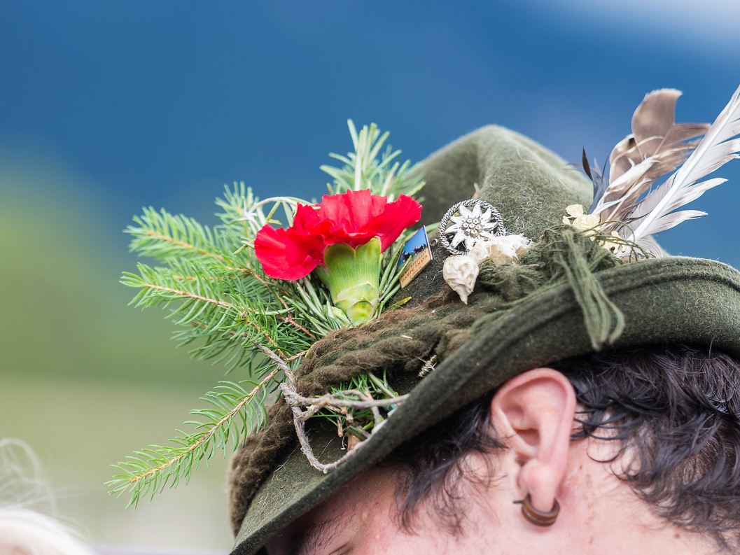 Angeboten wurden kulinarische Schmankerln vom Bauernhof und der Alm und dazu spielte Mathias Schneider zünftige Lieder, die auf Tiroler Almen gerne gehört und gesungen werden. Mathias gehört schon seit Jahren zum Hirten-Team beim Almabtrieb von der Hochfeldern Alm.