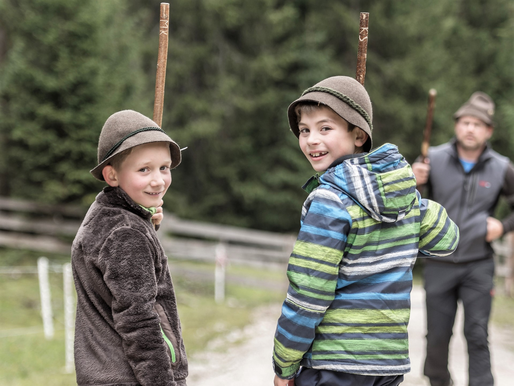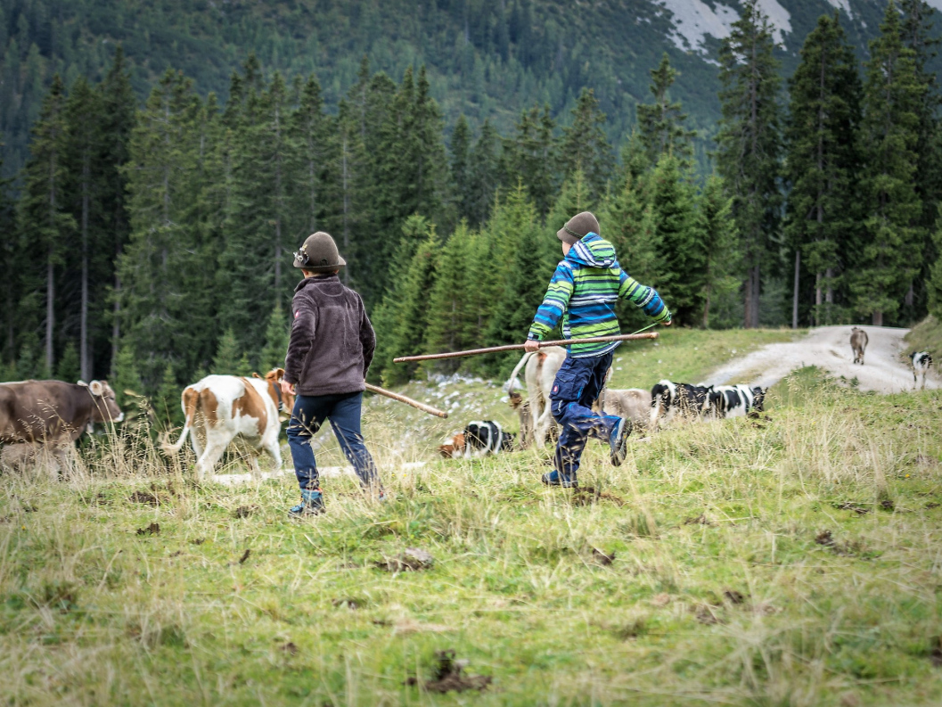 Die Feldernalm-Hirten Fabio Riml und Martin Reich führten den Almabtrieb an. Unterstützt von den Hirten und ihren Teams der Nachbaralmen wie Tillfussalm, Seebenalm und von der Coburger Hütte.