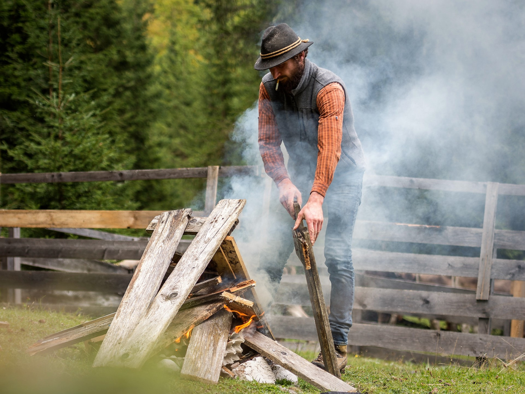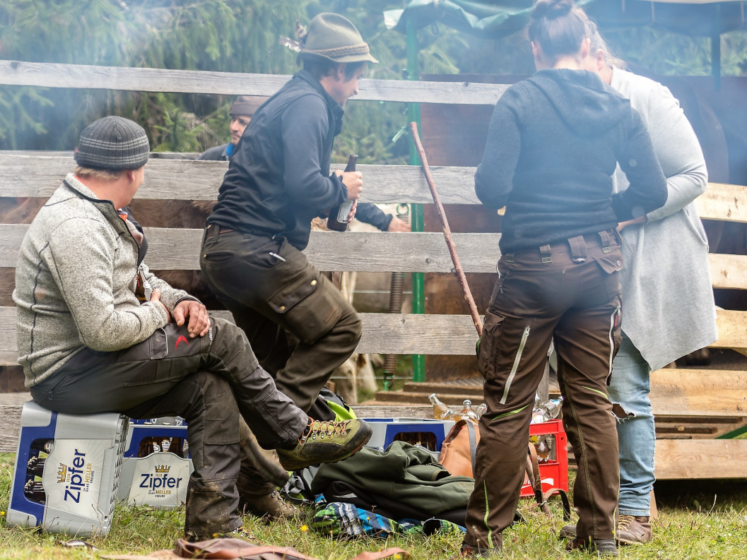 Mit unseren Bildern sind wir von der Alm bis nach Mieming „ganz nah dran“. Fotografiert hat Elias Kapeller, der schon beim Sammeln des Almviehs auf der Feldernalm dabei war und die Nacht gemeinsam mit 20 Hirten auf der Alm verbrachte. Nach getaner Arbeit zündete Almhirt Martin Reich ein Feuer an. Zum Imbiss und Bier erzählten sich die Hirten erlebte Geschichten vom Almsommer. Der war überwiegend sehr verregnet und durch das viel zu kalte Frühjahr hatten die Hirten allen Grund, mit dem Weidefutter nicht „zu 100 Prozent“ zufrieden sein zu können.
