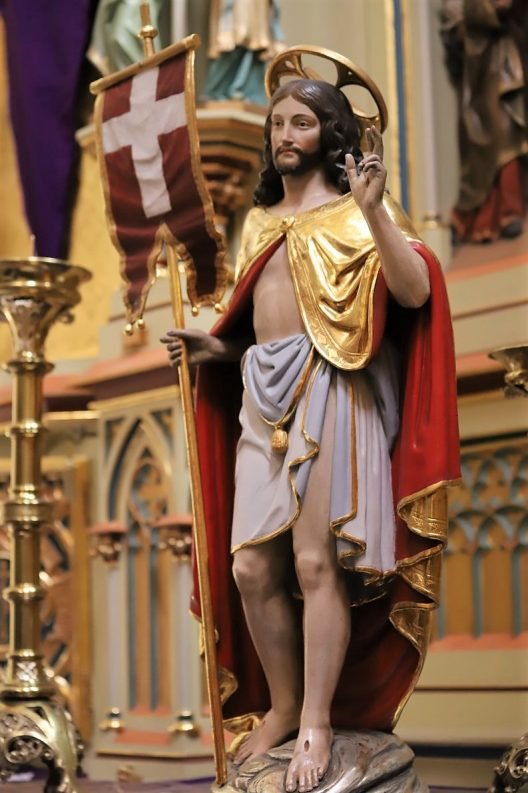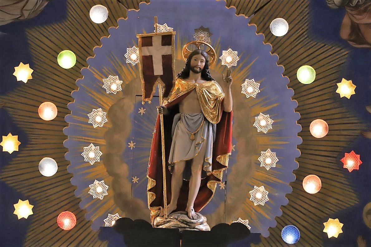 Der auferstandene Christus, mit Siegesfahne, wurde 2015 von Markus Kniepeiß aufwendig restauriert. (Foto: Knut Kuckel)