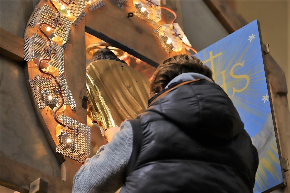 Dazu braucht es wie jedes Jahr einige freiwillige Helfer hinter den Kulissen, so Peter Kniepeiß, die zur passenden Zeit diese Handgriffe zur Freude der andächtigen Gläubigen durchführen.