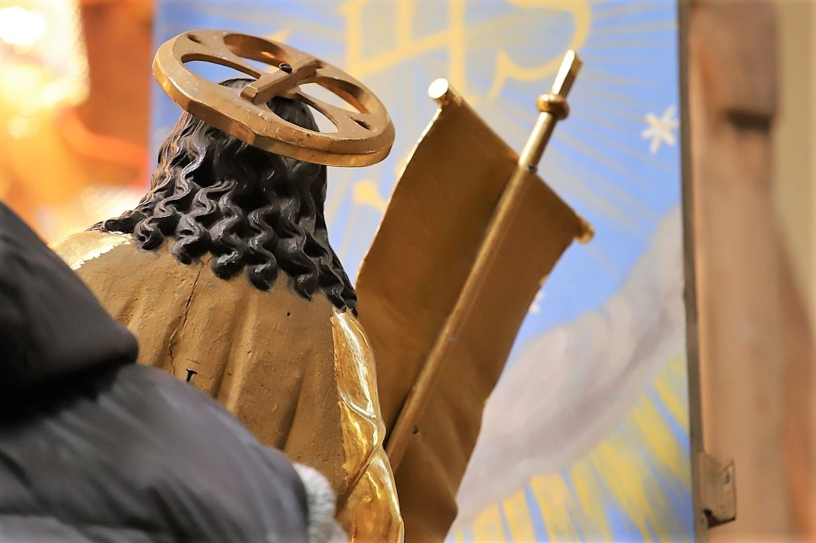 Der auferstandene Christus, mit Siegesfahne, wurde 2015 von Markus Kniepeiß aufwändig restauriert. „Jesus war sehr beschädigt. Die Finger der rechten Hand waren beispielsweise abgebrochen. Für mich gab es da auch viel Holzschnitzer-Arbeit.“