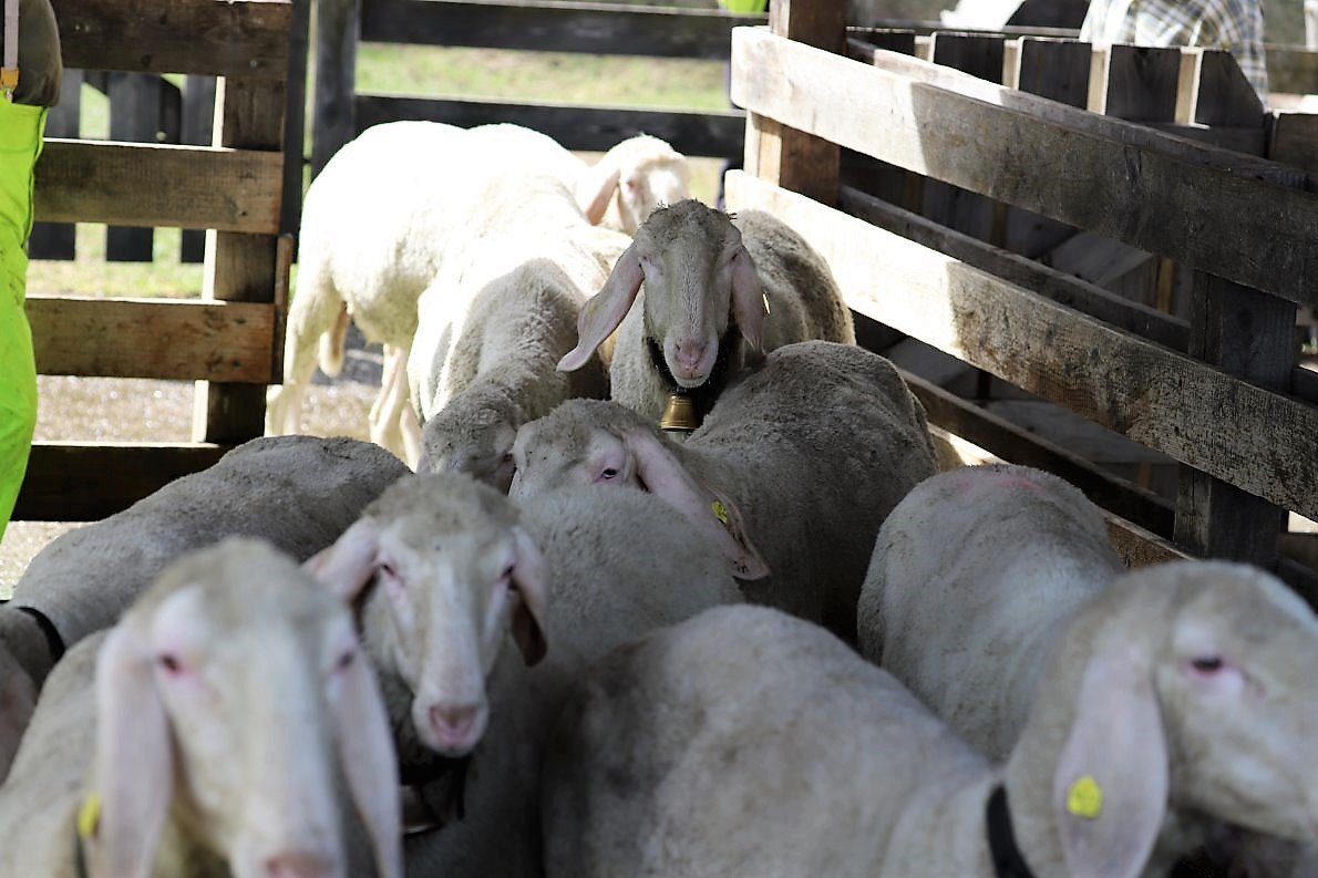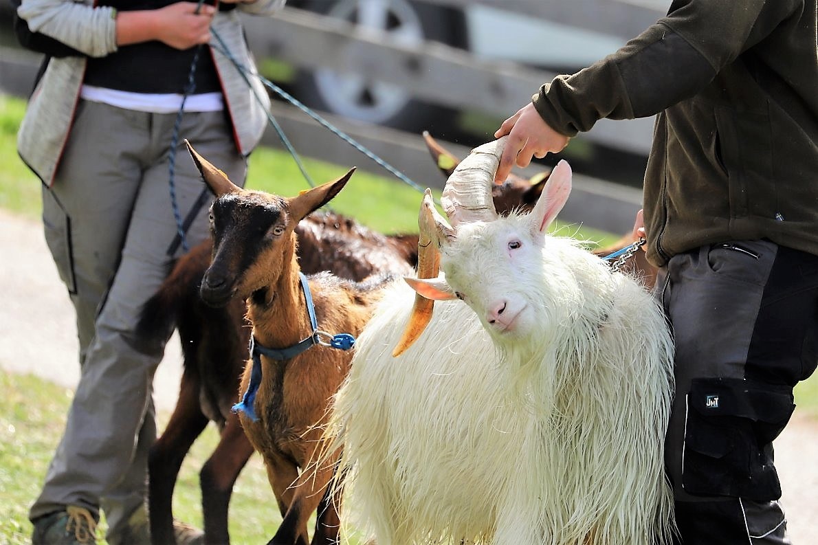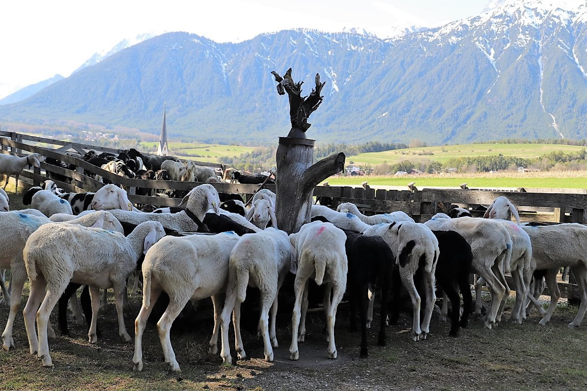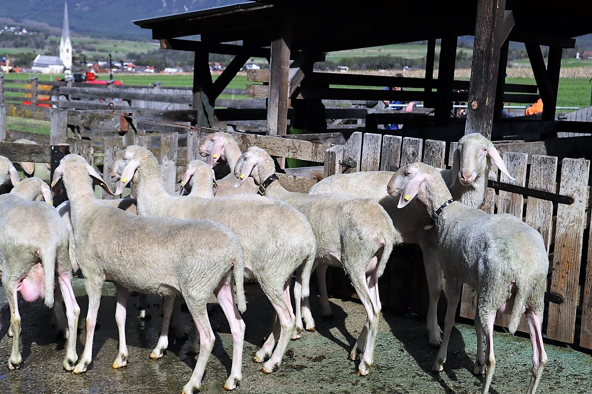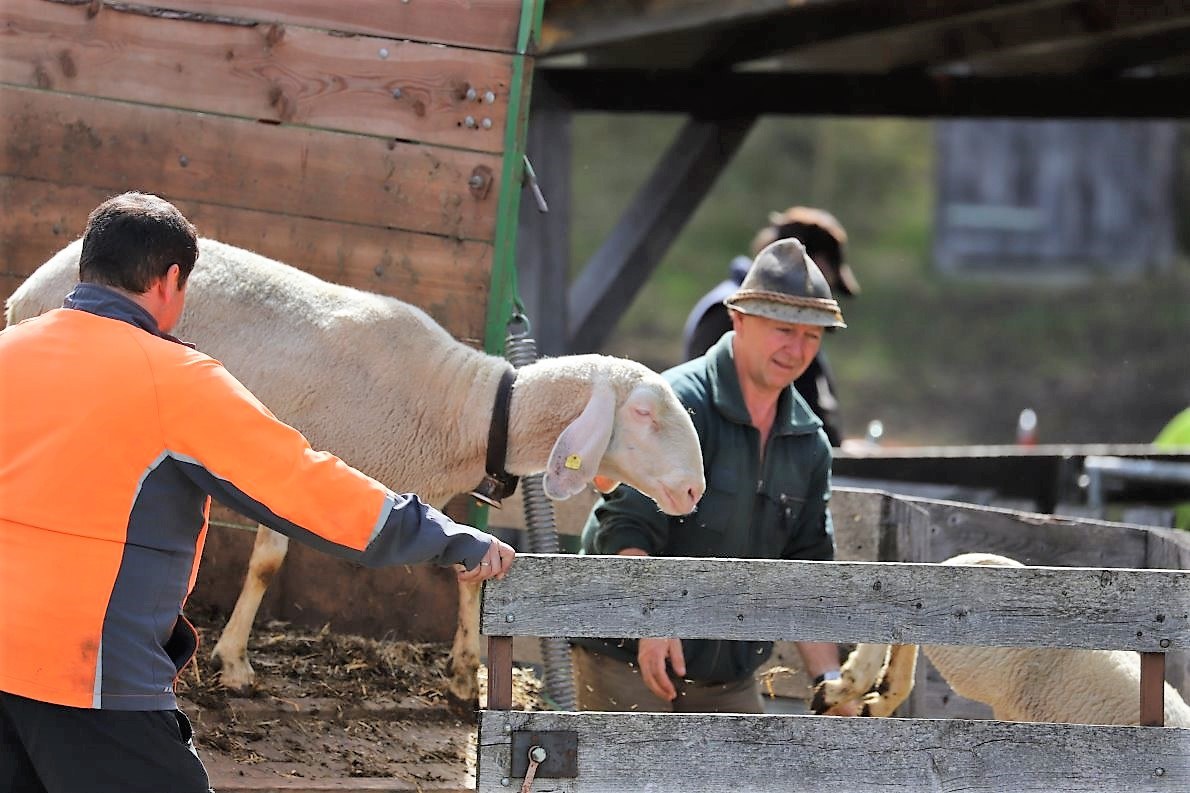 Rund 30 Schafhalter aus der Region kamen mit ihren über 1100 Schafen, Ziegen und Lämmern am Samstag, dem 14. April 2018 nach Untermieming/Fiecht ins Schafbad.