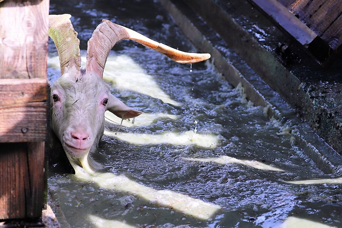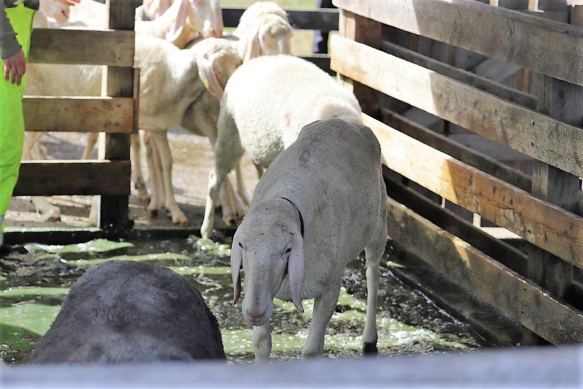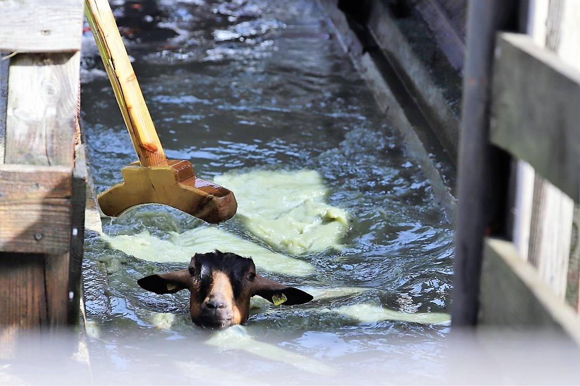 Das Frühjahrsschafbad ist vom Gesetzgeber für alle Schafhalter vorgeschrieben. Die Tiere wurden mit dem Bademittel Sebacil gegen die Schafsräude und andere Krankheiten desinfiziert.