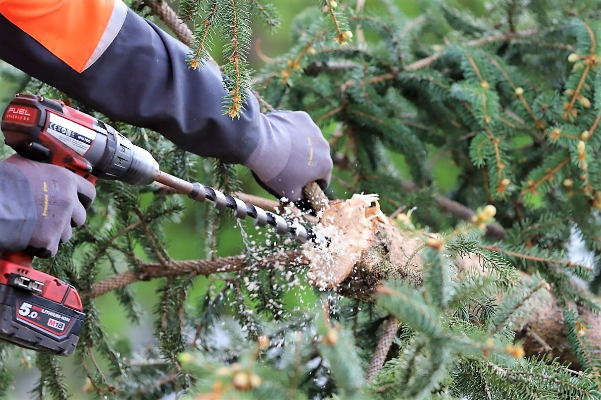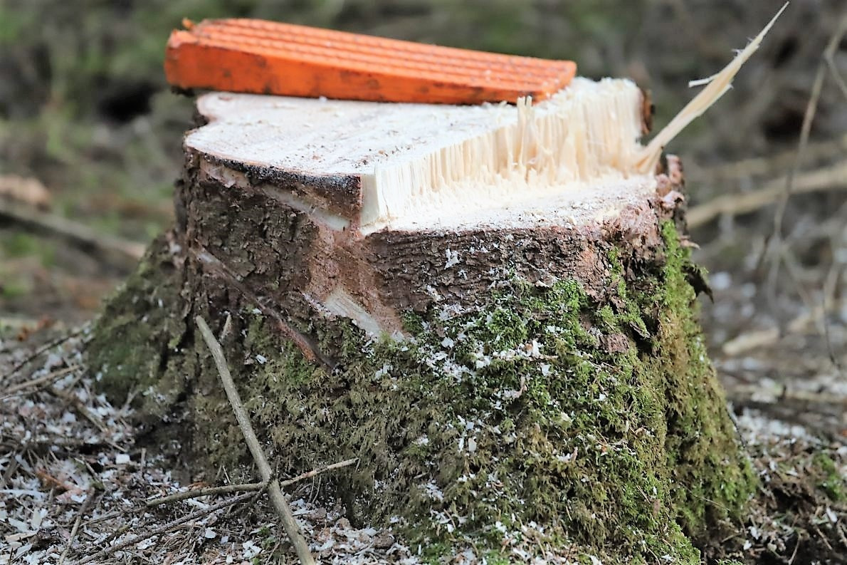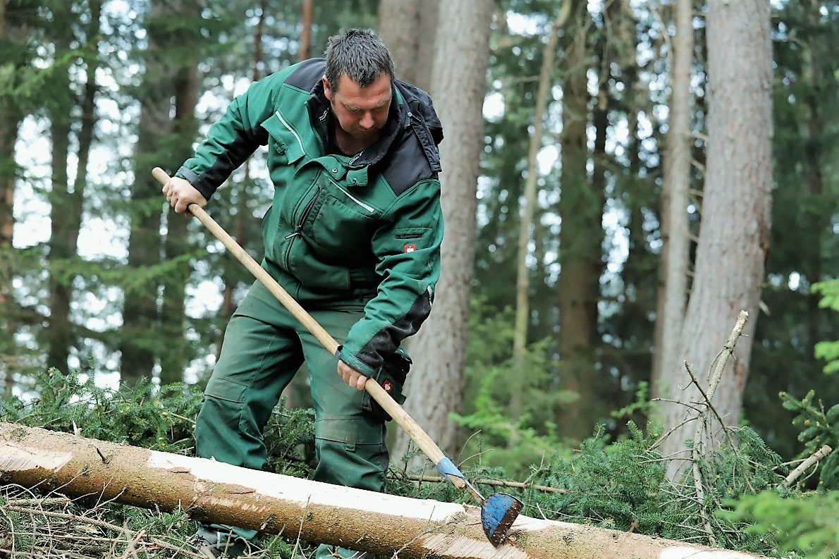 Dieser Vorgang dauerte gefühlt nur zwei bis drei Minuten. Dann fällt der Baum in die gewünschte Richtung. Alles sieht so leicht aus. Baumfällen ist aber eine Kunst. Michael Holzeis ist – was das angeht – ein über die Dorfgrenzen hinaus anerkannter Künstler.