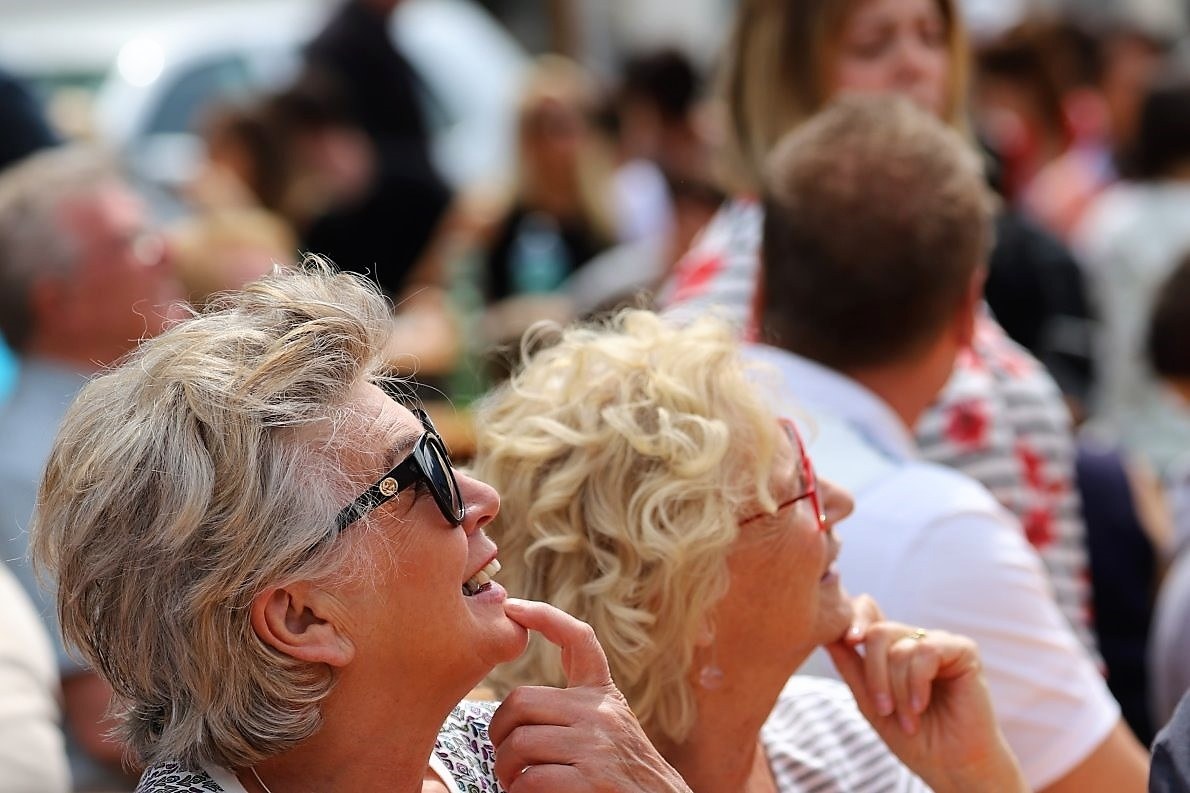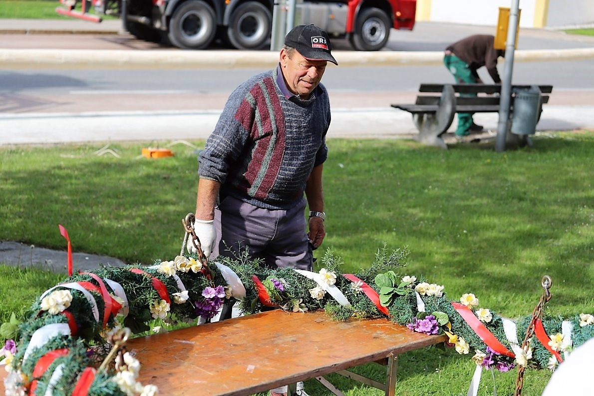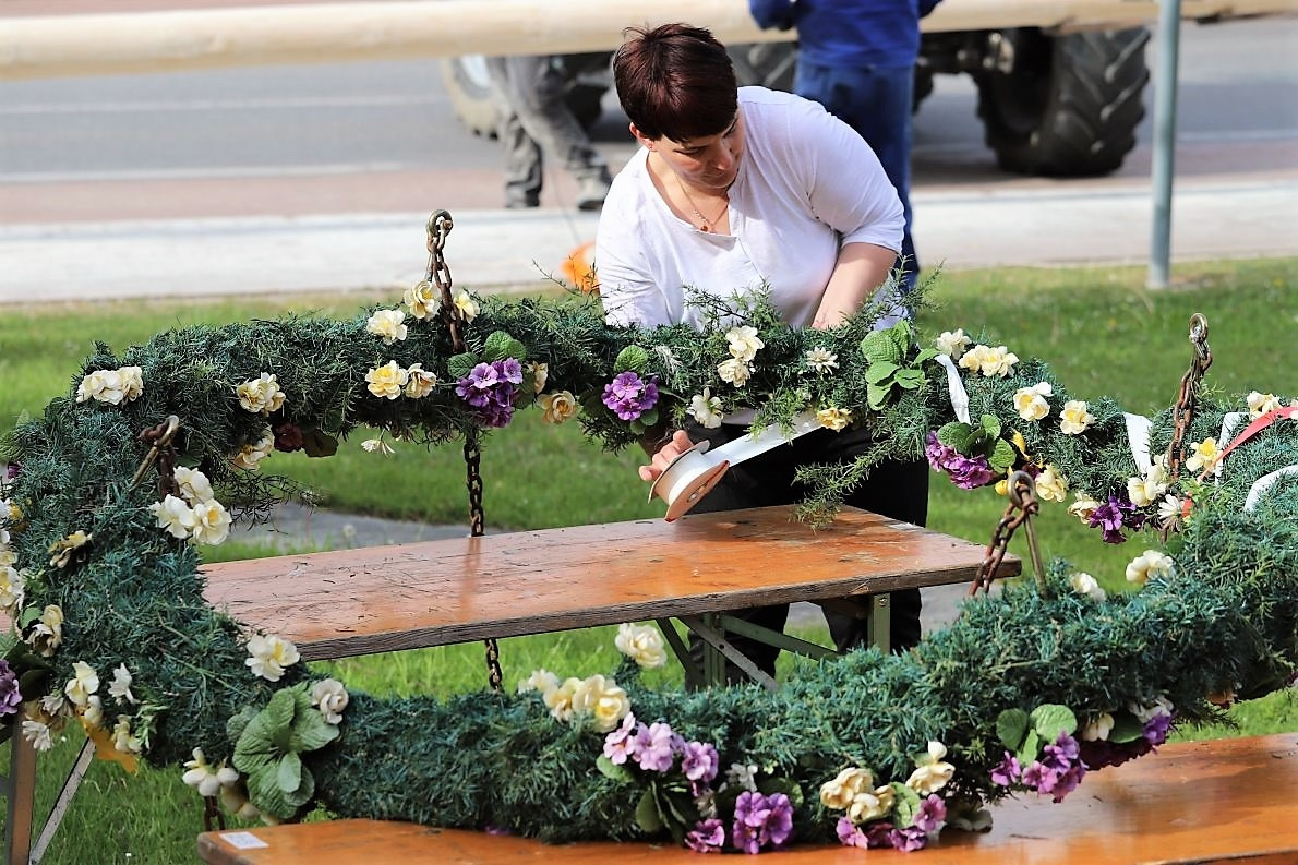 Alles scheint in Bewegung zu sein. Die ersten Kinder versammeln sich. Sie helfen beim Schmücken des Maibaumes, der inzwischen wieder eine feste Krone hat. Frühe Gäste lassen sich auf den Bänken nieder und leisten den Schaulustigen auf den Balkonen der Häuser beim “Sightseeing” Gesellschaft.