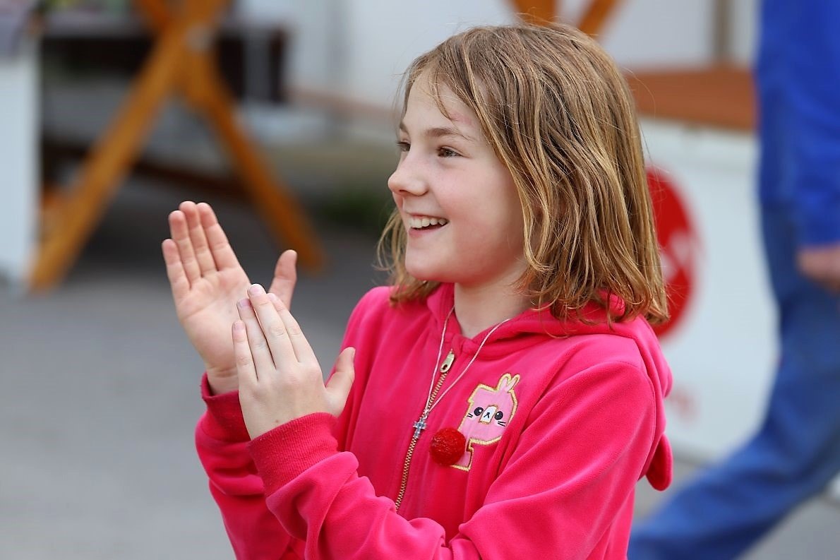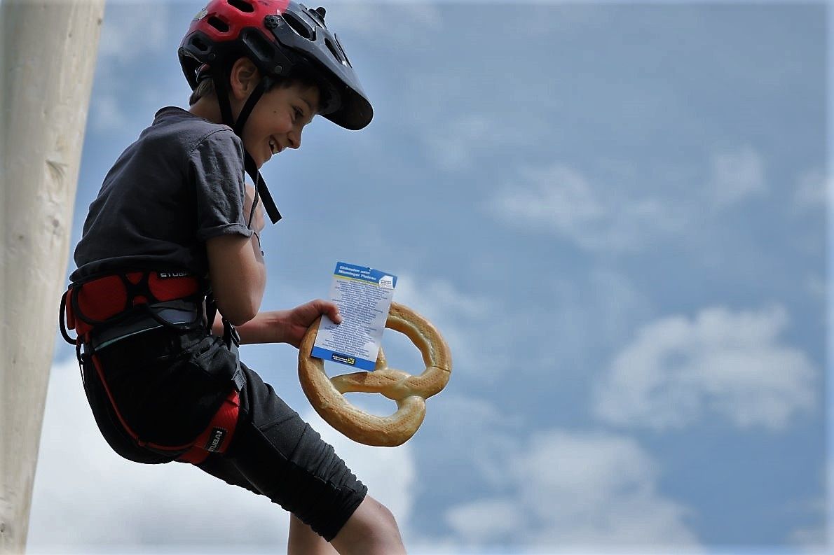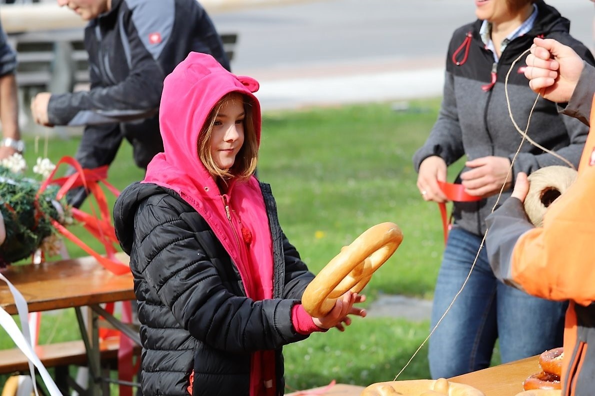 Der siebenjährige Lionel war der Erste, der sich mit Brezn und Raika-Gutschein von mir fotografieren ließ. Unter dem Applaus der zahlreichen Maifest-Gäste.